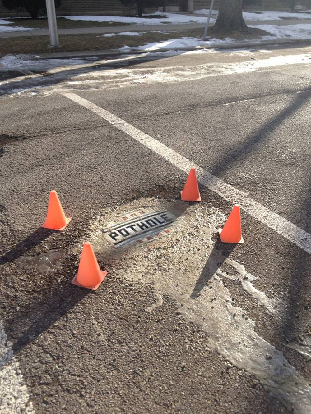 Curiosa iniciativa la de Jim Bachor, un artista que ha decidido arreglar los agujeros de la calzada con elaborados mosaicos. Y es que las calles de Chicago han acabado completamente cubiertas de baches y socavones tras haber sufrido uno de los inviernos más duros que se recuerdan durante las tres últimas décadas (el agua, la sal y las bajas temperaturas son los ingredientes perfectos para que se formen estos molestos obstáculos). Tantos como 660.000, según estiman las autoridades locales, que no dan abasto para repararlos ni para pagar las facturas de los daños que están provocando en los vehículos (llantas destrozadas, neumáticos reventados…).