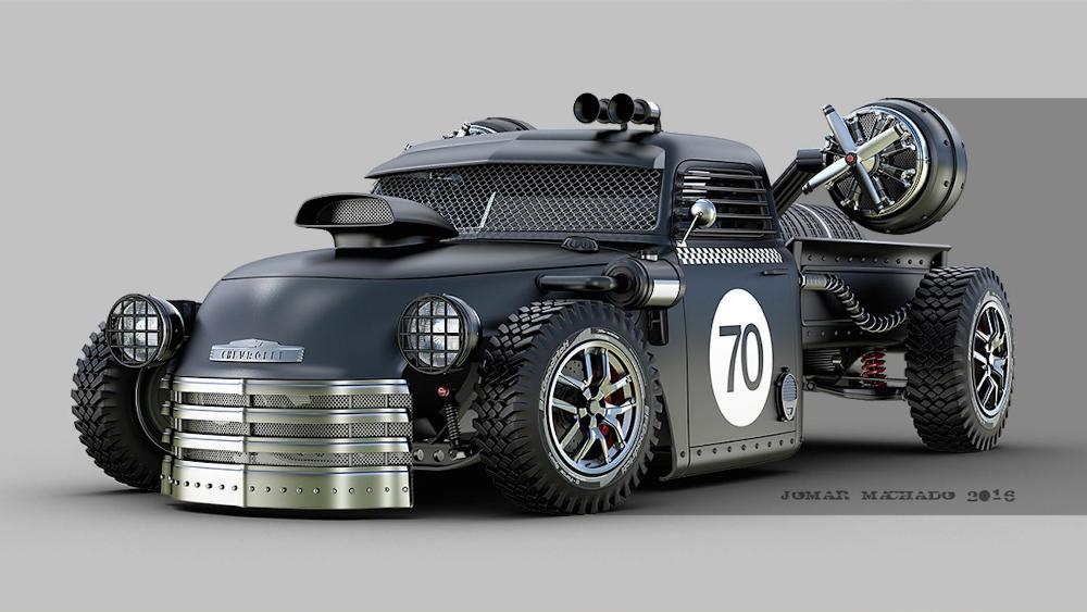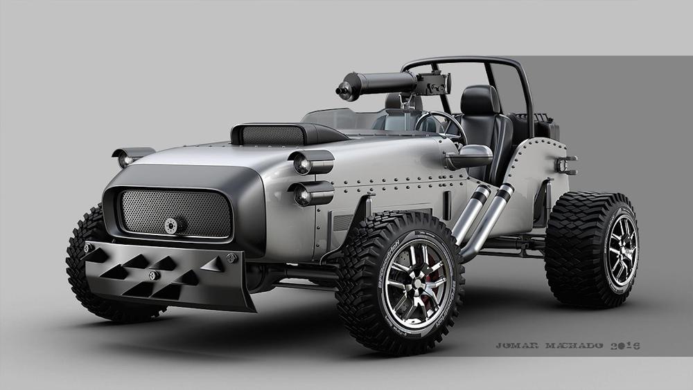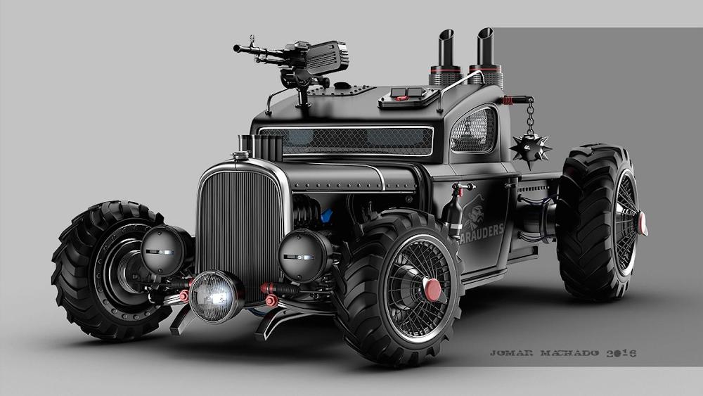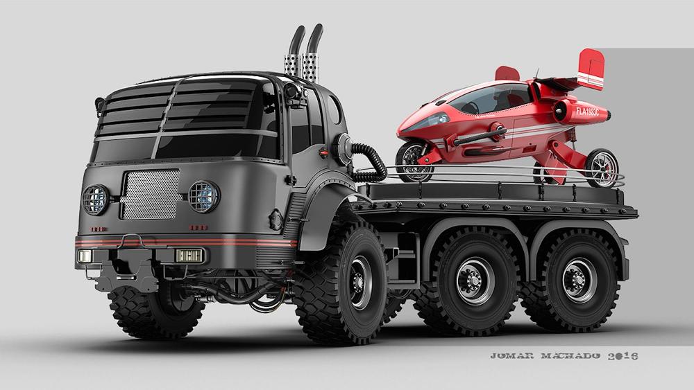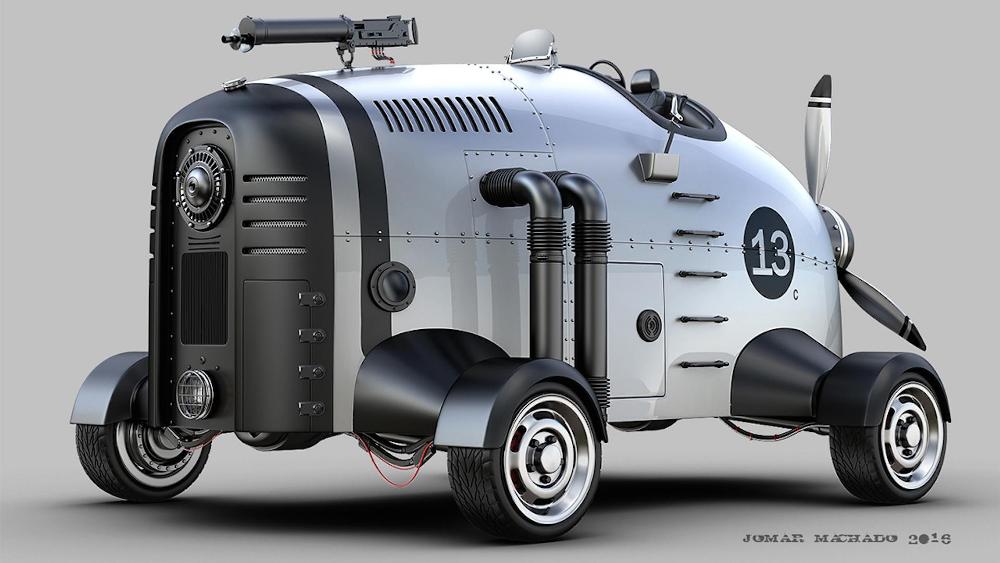 Al más puro estilo de Mad Max, pero con un toque más elegante, sutil y refinado, Jomar Machado nos presenta un trabajo que lleva años desarrollando. Este artista brasileño ha convertido vehículos actuales en máquinas voladoras postapocalípticas a partir de su talento natural para el diseño digital. Machado nos muestra su particular visión de lo que podrían ser los vehículos actuales y clásicos en un hipotético futuro en el que la Tierra hubiera sido devastada por una catástrofe planetaria.