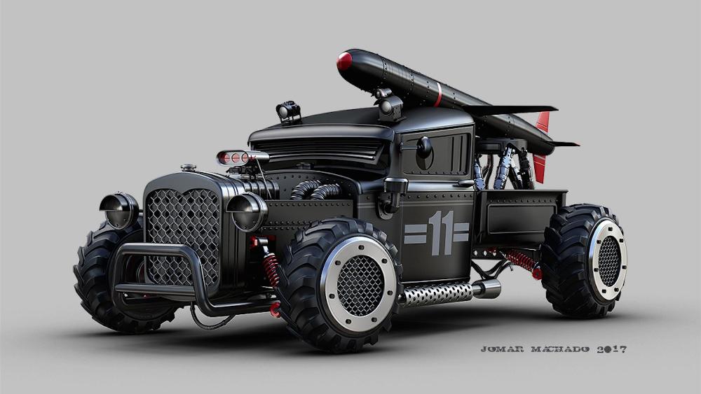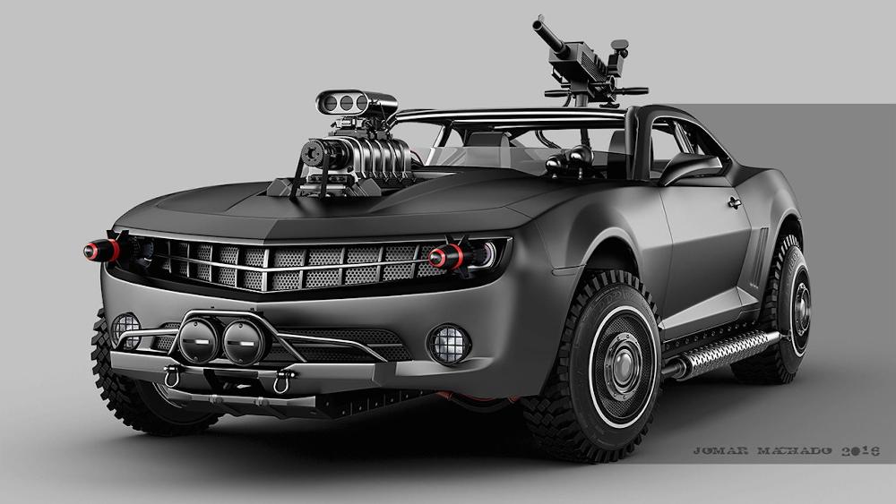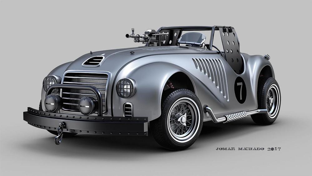 Entre los diseños podemos destacar el Bugatti Veyron con ametralladoras, blindaje en los cristales y un sofisticado sistema que le permite levitar sobre la superficie terrestre. Siguiendo esta línea encontramos un Ford Mustang (prueba) de la generación anterior que ha reemplazado las ametralladoras por misiles y cuenta incluso con un enorme alerón. Un elegante Porsche 356 descapotable y un monoplaza de Fórmula 1 que guarda más relación con un caza de combate que con un coche de carreras también están presentes en la galería de imágenes.