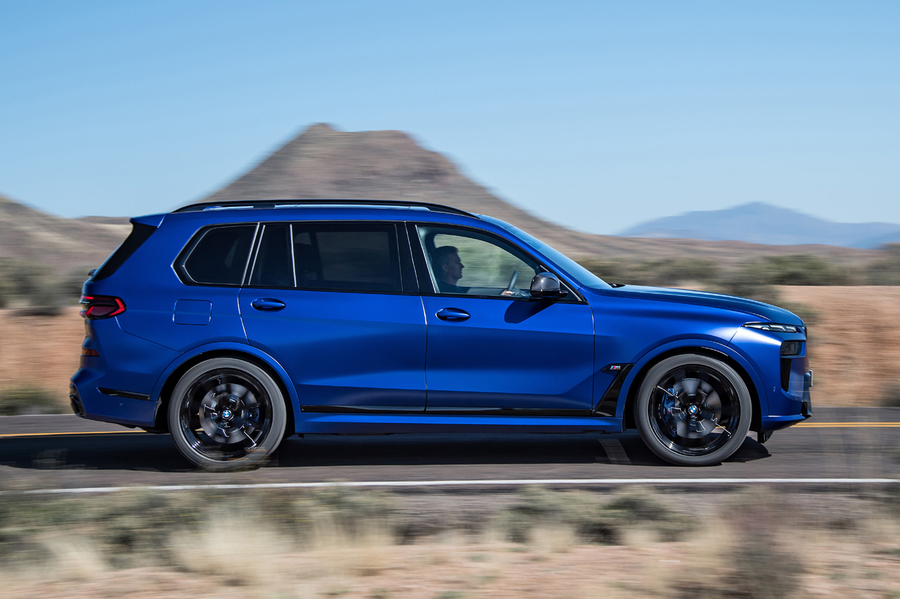 El BMW X7 2022 estrena unos pilotos de ledes con un aspecto más fino y tridimensional. Estos están unidos por una barra cromada con cubierta de cristal. Otras novedades del exterior son los colores inéditos ‘Sparkling Copper Grey’ metalizado y ‘M Marina Bay Blue’ metalizado (el de las fotos) o las actualizadas llantas de aleación. Estas últimas pueden tener ahora diámetros de hasta 23 pulgadas.