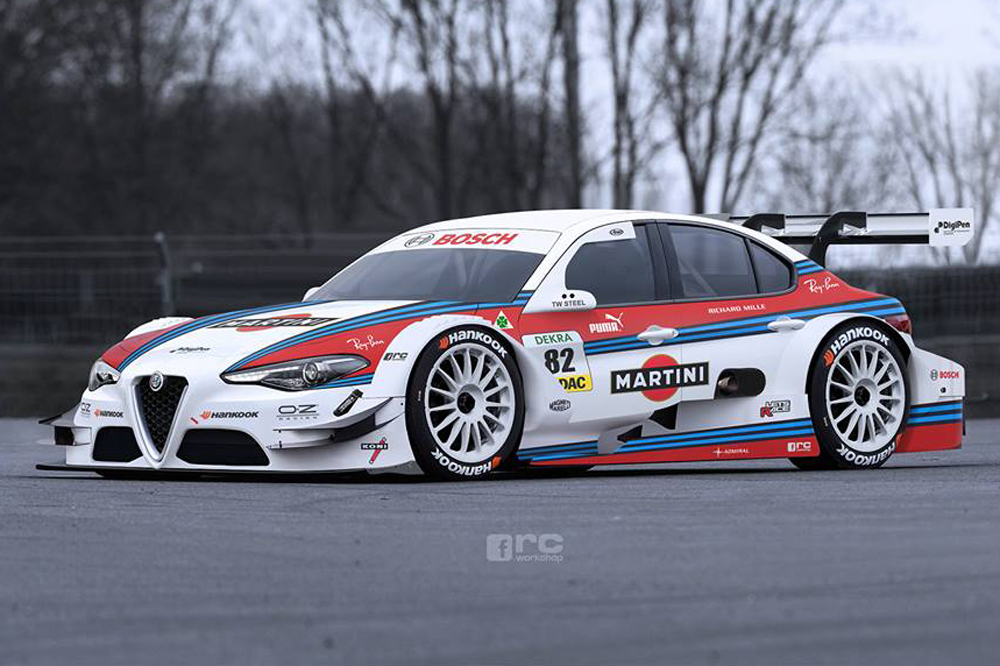 ¿Cómo sería el Alfa Romeo Giulia si participara en el DTM? Nos encantaría volver a ver a un Alfa Romeo dando guerra en los circuitos a los bólidos de Mercedes o BMW como ya hiciera en el pasado el Alfa Romeo 155 V6 Ti de competición. Por eso no hemos podido evitar mostrarte esta impresionante recreación virtual realizada por los chicos de RC-Workchop, que con gran habilidad han transformado un Alfa Romeo Giulia (prueba) en un bólido de carreras pensado para participar en el DTM.