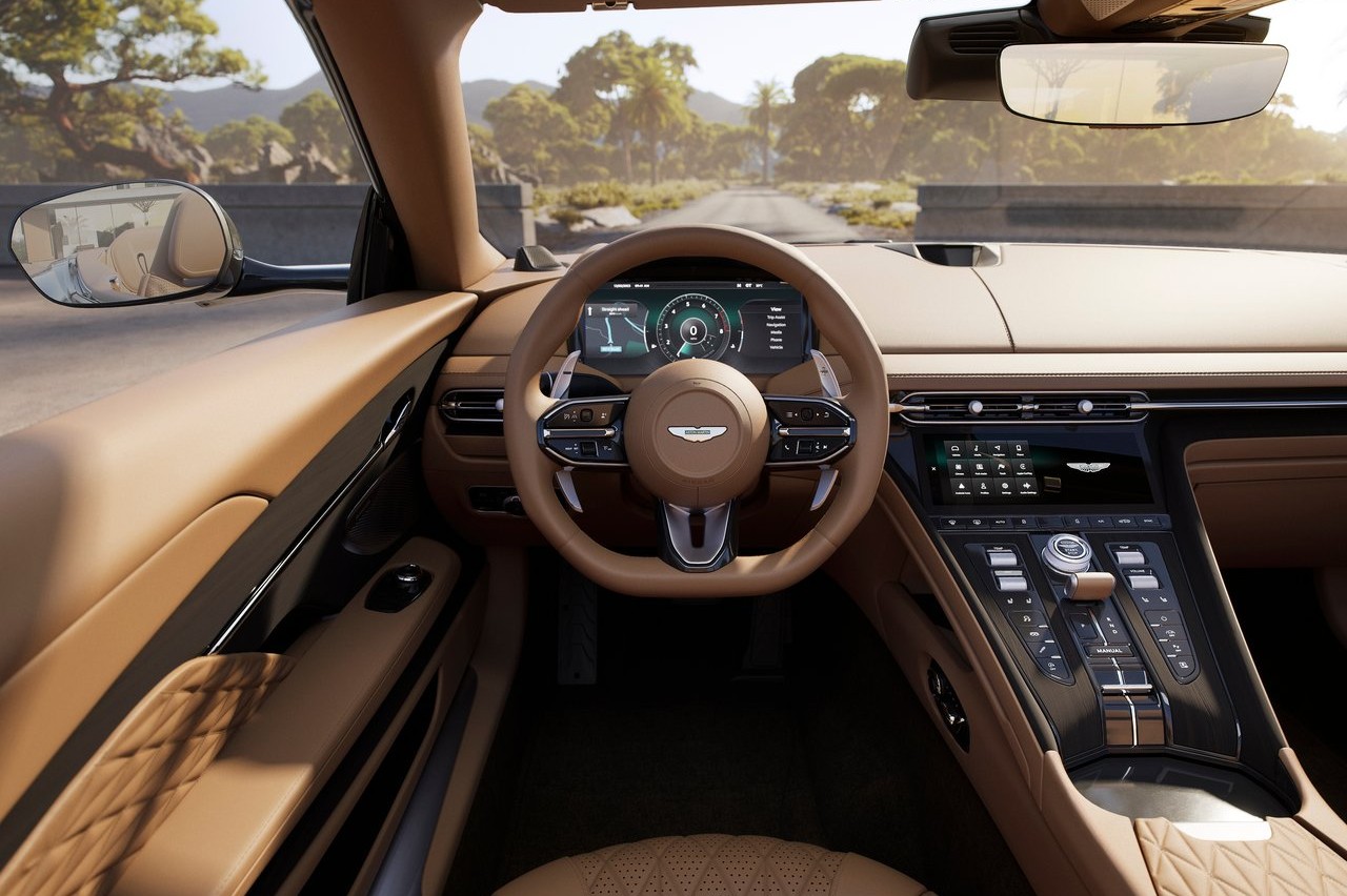 Hay más novedades en el Aston Martin DB12 Volante, con respecto a la variante cerrada. Cabe destacar una columna de dirección sin aislamiento y un eje delantero un 140% más rígido. El encargado de mover esta pieza es un motor V8 construido a mano, de 4.0 litros biturbo que genera 680 CV y 800 Nm de par, entre las 2.750 y 6.000 vueltas. Un corazón que está fabricado a mano.