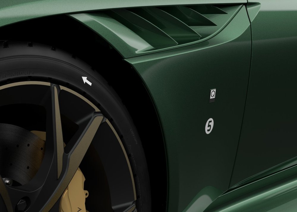 Esta edición especial está basada en el Aston Martin DBS Superleggera y rematada en color Aston Martin Racing Green con techo de fibra de carbono con acabado brillante, detalles en bronce, una parrilla a medida y unas llantas forjadas de 21 pulgadas. Otros detalles incluyen el número en el guardabarros delantero, una insignia ‘Q by Aston Martin’ y la silueta del DBR1 ganador de tan prestigiosa carrera de resistencia grabado en el alerón trasero de carbono.