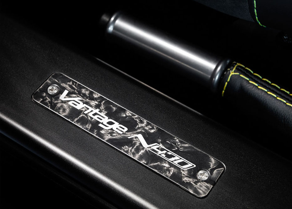 La firma de Gaydon ha preparado dos novedades para el Salón de Ginebra 2014. La primera de ellas, y la más destacada, es el Aston Martin V8 Vantage N430. Se trata de una versión especial y limitada que ha sido sometida a una cura de adelgazamiento con la que su peso se ha visto rebajado 20 kg gracias a los asientos de fibra de carbono y Kevlar que monta y a las llantas de aleación ligera de 19 pulgadas.