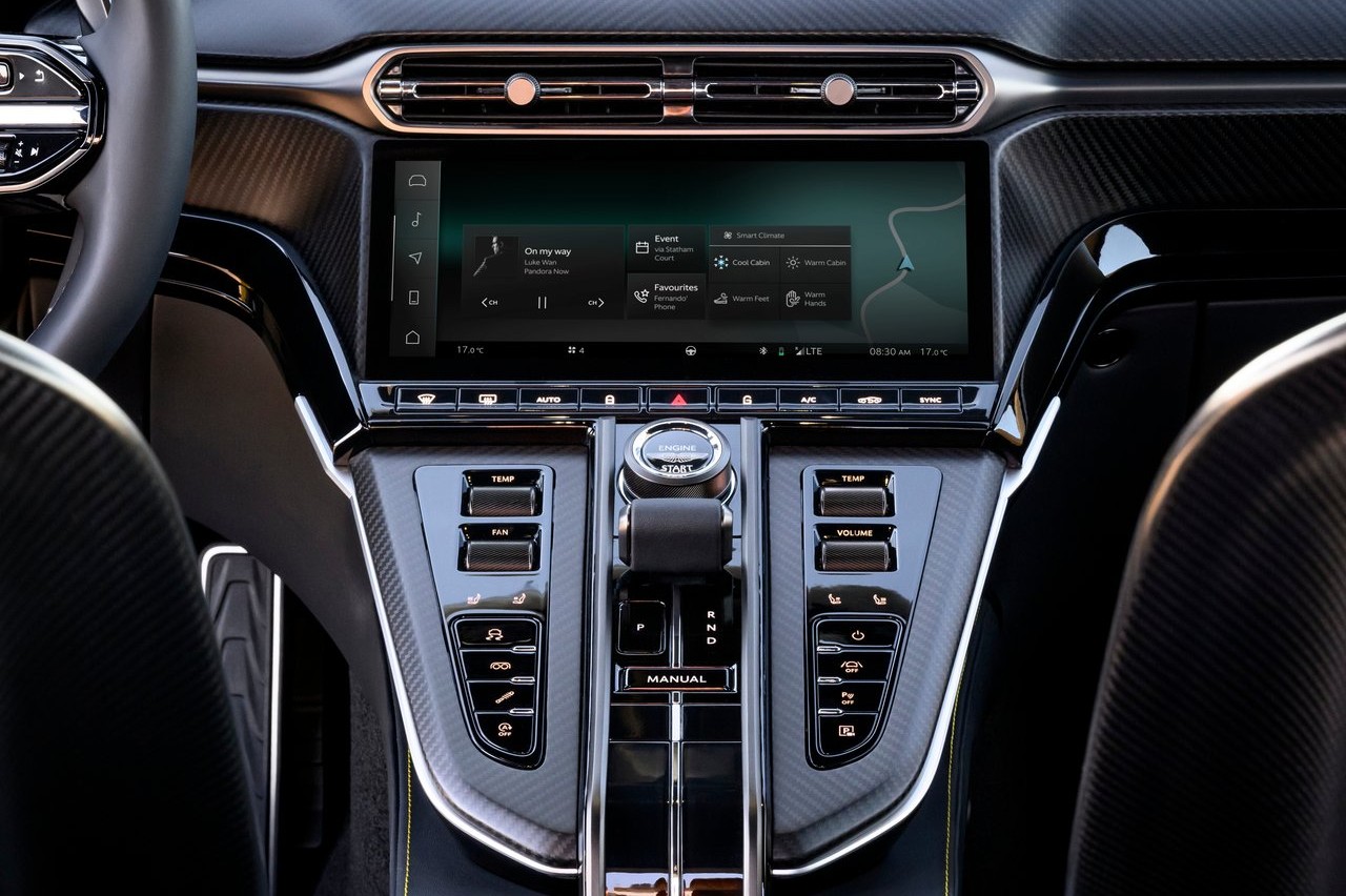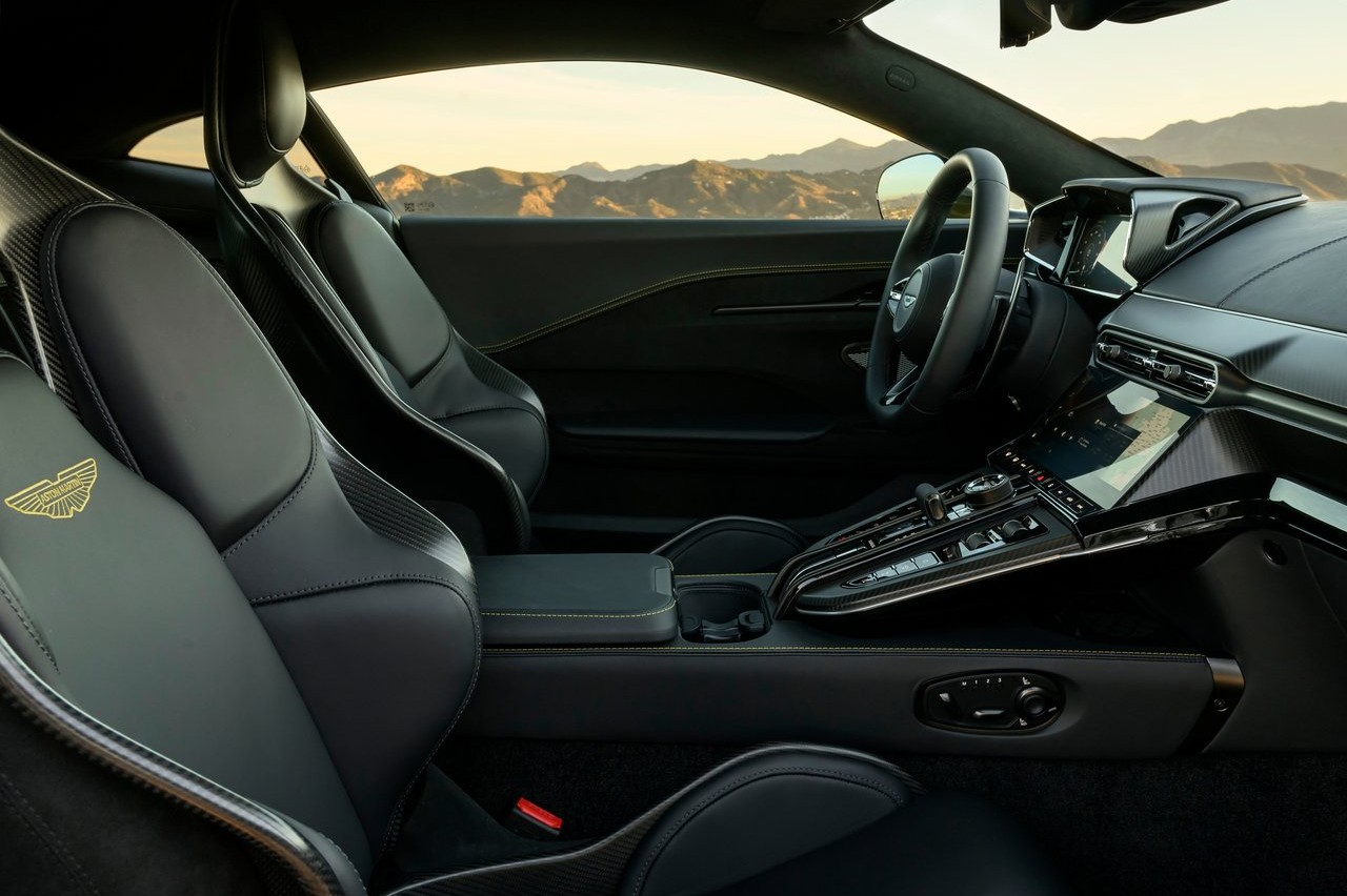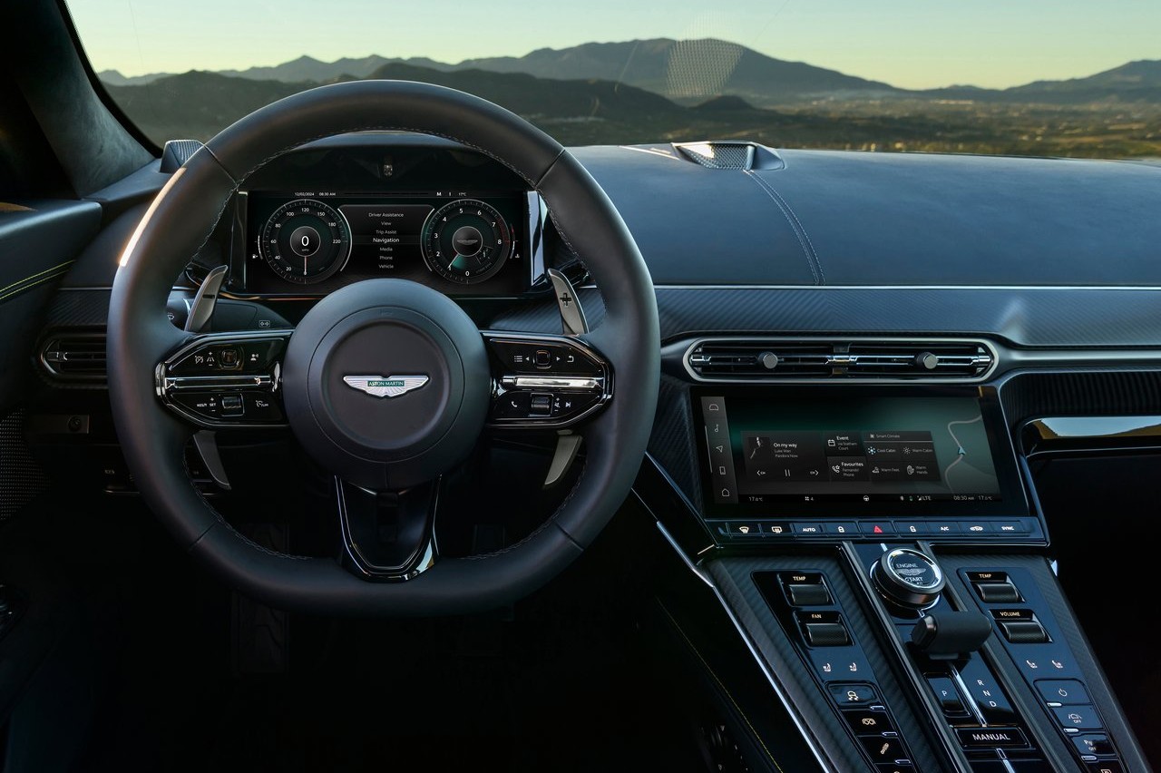 Si el exterior muestra las características propias de un Aston Martin, el interior no se queda atrás. Encontramos un ambiente que rezuma lujo y deportividad por los cuatro costados en el que cada detalle se ha construido con especial cuidado. El centro del salpicadero está presidido por una pantalla táctil de 10,25 pulgadas que integra el sistema de información y entretenimiento de última generación, que ya estrenó el Aston Martin DB12 (prueba).