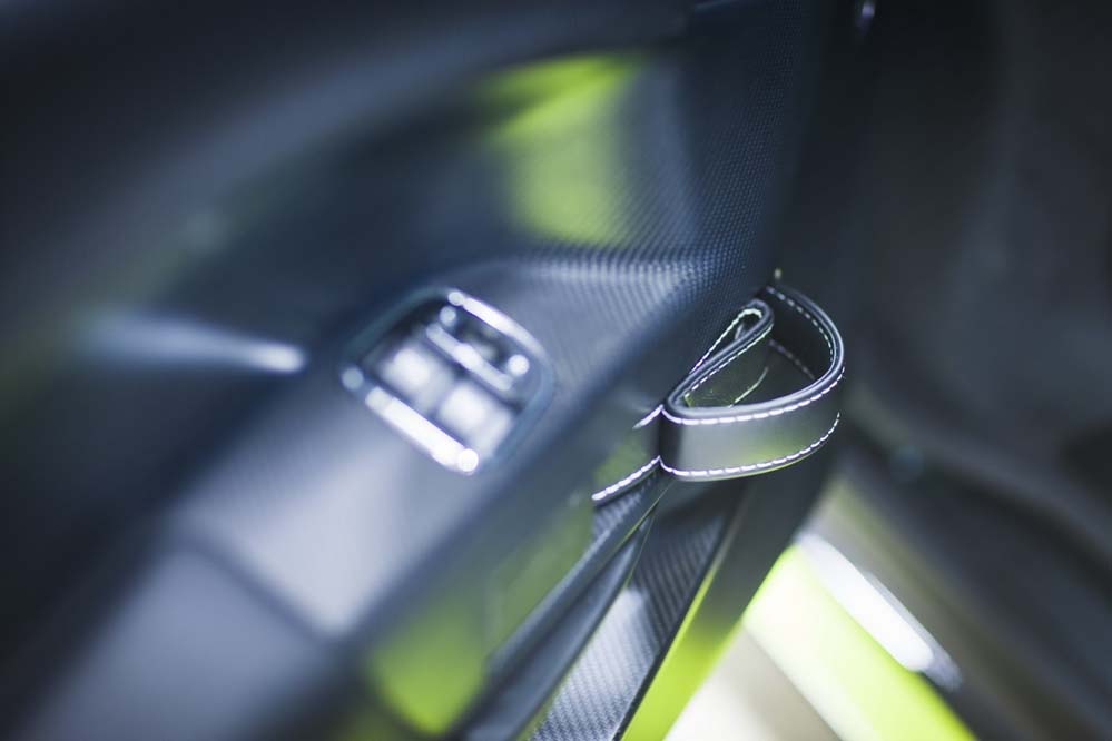 Además, la batería ha sido sustituida por una de ión-litio, que reduce aún más el peso del coche en la báscula. Pero ahí no queda la cosa, porque tanto las ventanillas laterales traseras como la luna posterior han sido fabricadas en policarbonato, mientras que el material empleado para el escape ha sido el titanio. Eso sí, si hay que hablar de comodidades, no se escatima aunque el peso se incremente, porque el Vantage GT8 equipa aire acondicionado, equipo de sonido de 160W y sistema de infoentretenimiento AMi III.