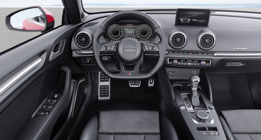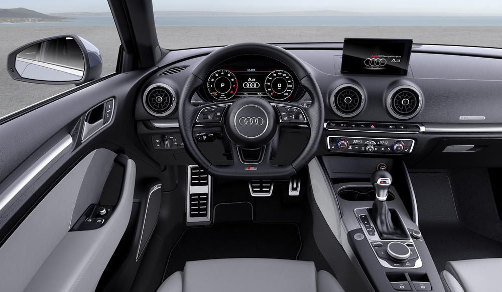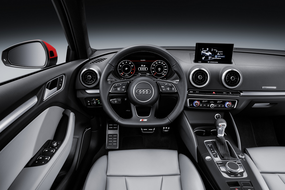 En el habitáculo, el principal cambio que incorpora el nuevo Audi A3 afecta al cuadro de instrumentos, que ha pasado de ser analógico a ser completamente digital gracias a la incorporación del denominado como Audi virtual cockpit, un elemento que ya estaba disponible en vehículos como el Audi TT Roadster (prueba), entre otros muchos. La estructura del menú MMI también se ha rediseñado y han ampliado el equipamiento con elementos como el asistente de conducción en atascos, denominado Audi traffic jam assist, que trabaja junto con el control de crucero adaptativo con función Stop&Go.