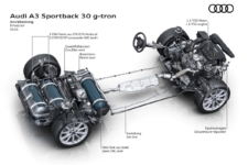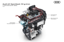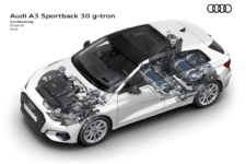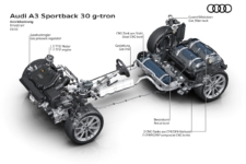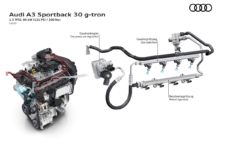Además, de serie presenta faros de LED, un cuadro de instrumentos digital, pantalla táctil de 10,1 pulgadas, volante multifunción de piel, Audi pre sense front, aviso de cambio de carril, asistente de desvío y asistente de giro, entre otros. Está disponible en tres líneas exteriores e interiores que se pueden combinar libremente. Esta versión de GNC del A3 estará disponible en Alemania y otros países europeos incluido España a partir de otoño. El precio en Alemania es de 30.705,88 euros.