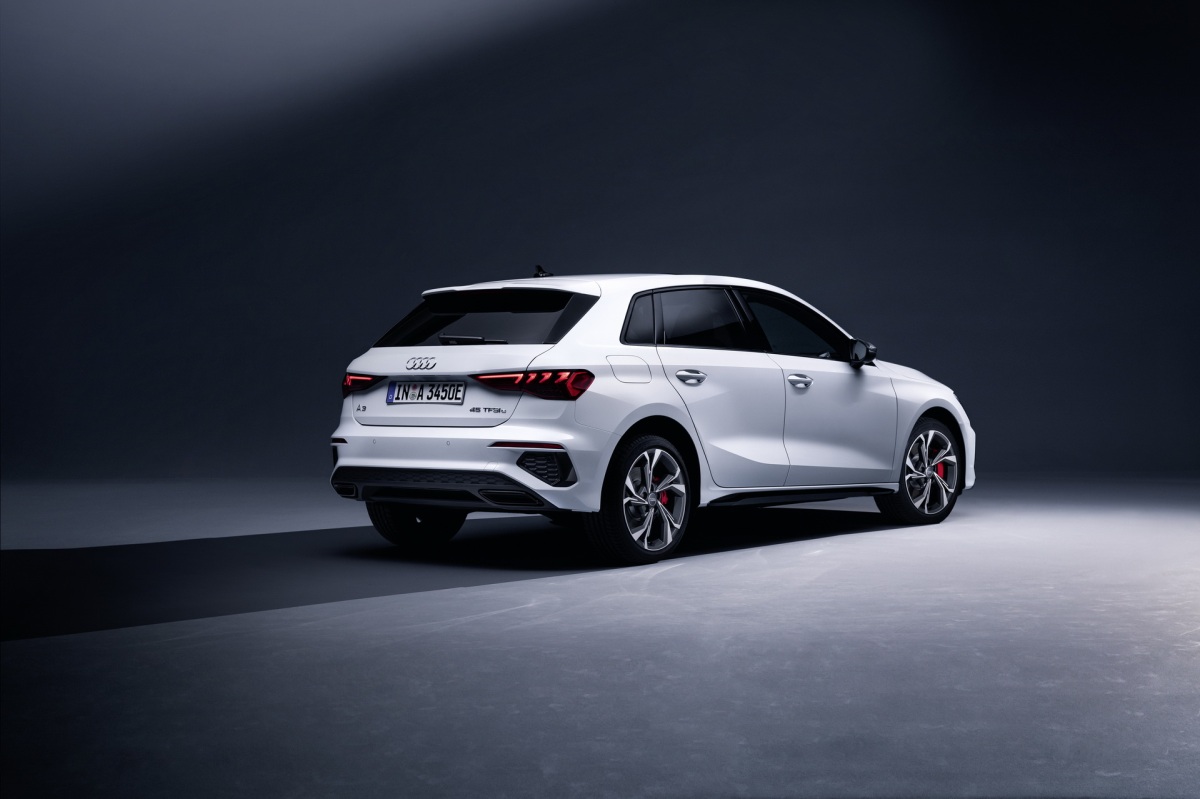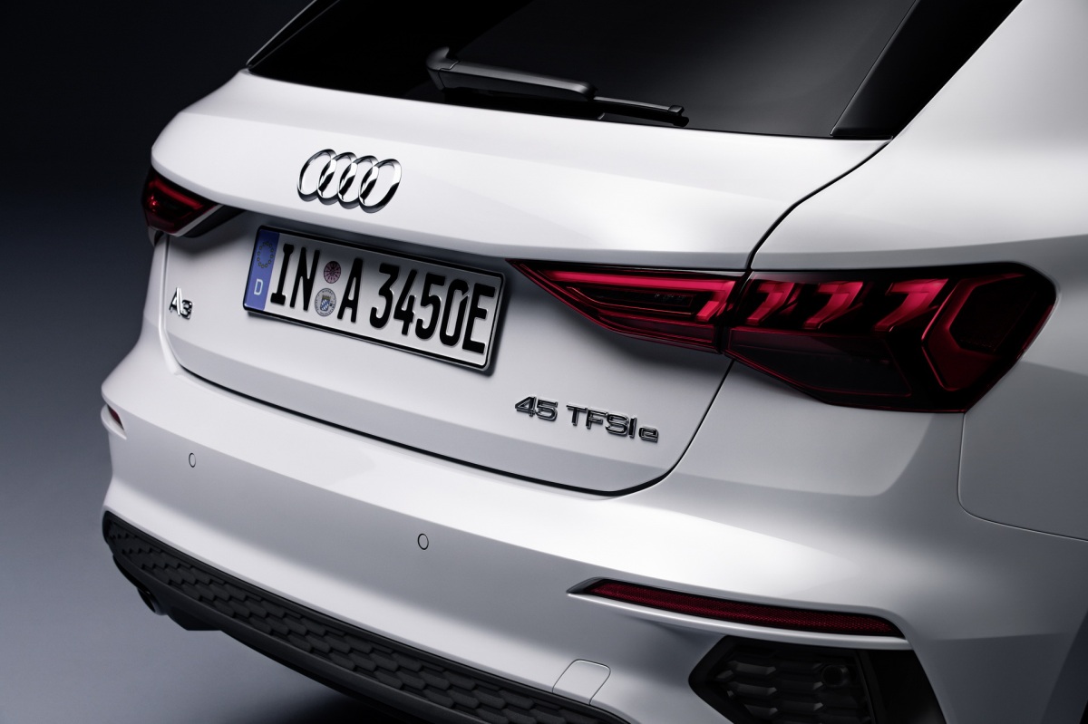 En cuanto a su imagen, el Audi A3 Sportback 45 TFSIe ofrece el paquete de estilo negro con una parrilla Singleframe con incrustaciones en negro brillante. Opcionalmente se pueden equipar los faros Matrix LED con luces dinámicas en curva. También incluye llantas de aleación de 17 pulgadas con discos de freno de 340 mm en el tren delantero y de 310 mm en el eje posterior. Las pinzas de freno están pintadas en rojo y, a diferencia del 40 TFSIe, el nuevo modelo incluye de serie Audi drive select, asientos deportivos, lunas tintadas, climatizador de dos zonas y llave confort.