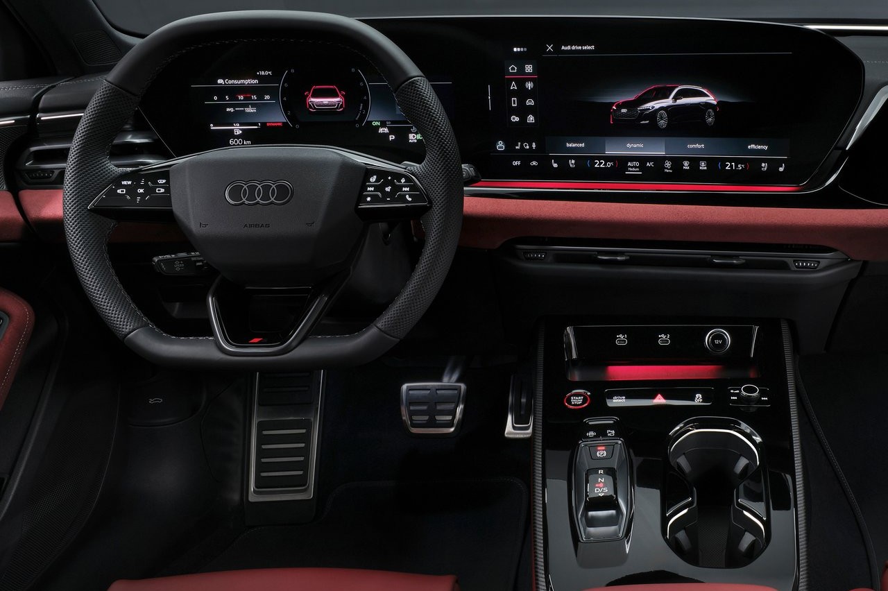 Siguiendo la filosofía ‘human-centric’, el interior del Audi A5 2024 presenta un diseño orientado al conductor, completamente digital. Por un lado, tenemos un cuadro de instrumentos de 11,9 pulgadas y, por otro, en el centro, una pantalla de 14,5 pulgadas, ambas unidas por un panel curvo. Opcionalmente, se puede añadir un tercer dispositivo en el lado del acompañante, de 10,9 pulgadas, que puede reproducir contenido en streaming.