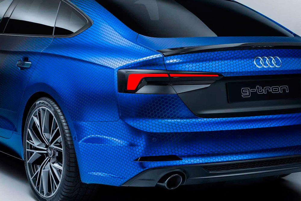 El lago Worthersee será testigo de excepción de este show car -muy lejos del espectacular Audi TT clubsport turbo technology concept car de hace dos años- que anticipa el vehículo de producción. Obviamente no su imagen, puesto que adopta una pintura en negro mate que se difumina en un azul con acabado panal de abeja. El último color también ha sido empleado en los faros, las pinzas de freno y las letras ‘g-tron del espoliar trasero y de la moldura lateral a la altura línea de tensión lateral y debajo del pilar A. Otro cambio, posiblemente uno de los más notables, lo encontramos en los grupos ópticos traseros, que son de nuevo cuño y que tienen forma de bumerán. Este no es el primer modelo de Audi que funciona con GNC, puesto que ya existe el A3 Sportback y el A4 Avant -además del Audi A5 Sportback de serie-, y como sus hermanos de gama, no presume de prestaciones de infarto, como ponen de manifiesto sus cifras: 0 a 100 km/h en 12,5” y velocidad máxima en 226 km/h. Y eso a pesar que debajo el capó se halla un 2.0 TFSI de 170 CV y 270 Nm, disponible en torno a las 1.650 rpm, que trabaja con un cambio S Tronic -en el de calle también estará disponible uno manual-.