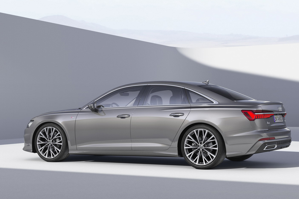 El nuevo A6 2018 se ensamblará en Neckarsulm (Alemania) y llegará al mercado antes de que finalice el presente año con una carrocería de 4.939 mm de longitud, es decir, 7 mm más que su antecesor. La anchura del conjunto también crece ligeramente hasta los 1.886 mm (+12 mm), al tiempo que han ampliado sutilmente la altura hasta 1.457 mm (+2 mm). El resultado es un vehículo con una imagen más deportiva, a lo que sin duda también ayudan las llantas de aleación de hasta 21 pulgadas de diámetro.