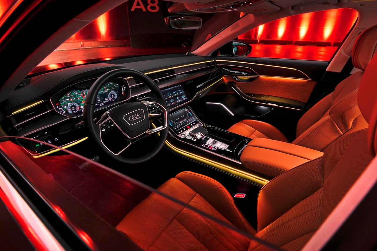 Además, Audi ha integrado por primera vez en el A8 el paquete exterior S line, con una serie de elementos de inspiración deportiva basados en el S8. La oferta de colores incluye hasta once posibilidades entre las que elegir, mientras que el programa Audi exclusive eleva las opciones hasta el infinito.