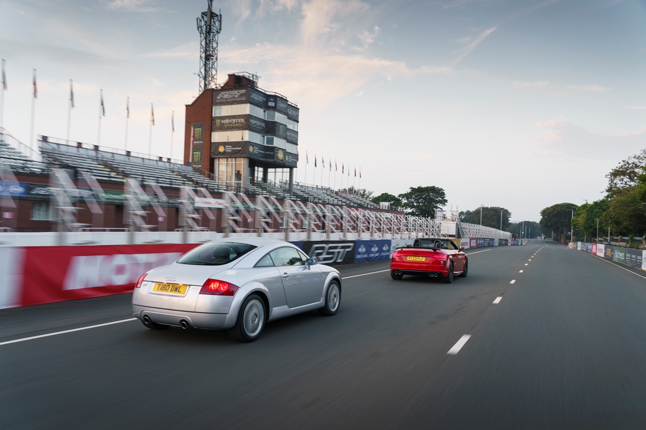 La sede del Tourist Trophy de la Isla de Man, la carrera de motos más peligrosa del mundo, inspiró el nombre del deportivo de Audi y es un escenario perfecto donde conmemorar su 25º cumpleaños. Para ello, la división del Reino Unido de Audi ha reunido tres unidades del TT y ha realizado una sesión fotográfica final con bellas instantáneas de los coches y de los paisajes.