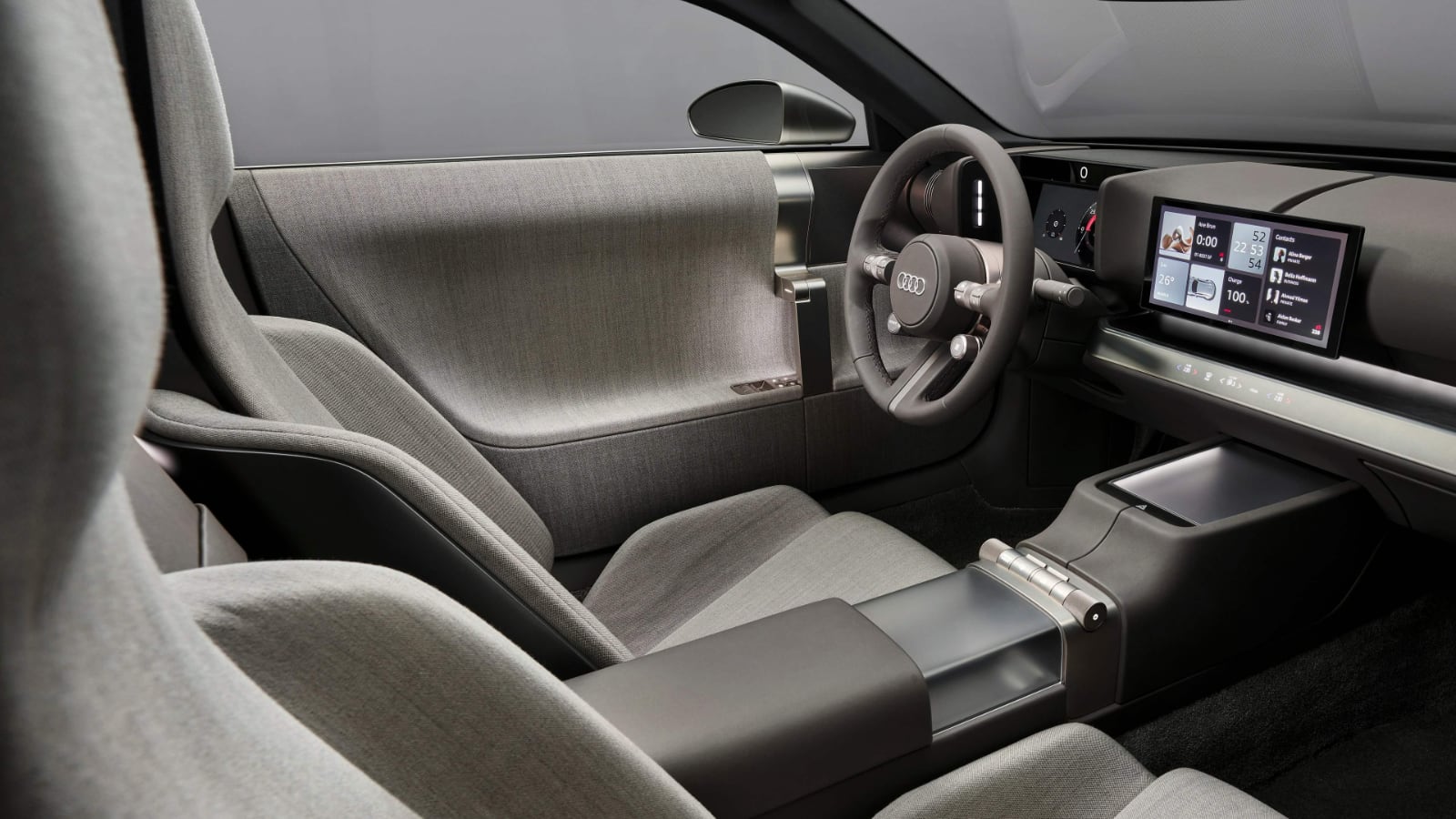 El habitáculo recibe colores cálidos y materiales como el aluminio, la fibra de carbono o tela con rugosidad, puesto que está fabricada con diferentes tipos de lana. Es como volver unos años atrás, época destacada en Audi. También porque el volante es totalmente redondo, porque la pantalla, que es escamoteable, no es de grandes dimensiones -de 10,4", algo que celebro- y porque adopta botones físicos con el característico clic de Audi. También hay hápticos, pero son muchos menos.