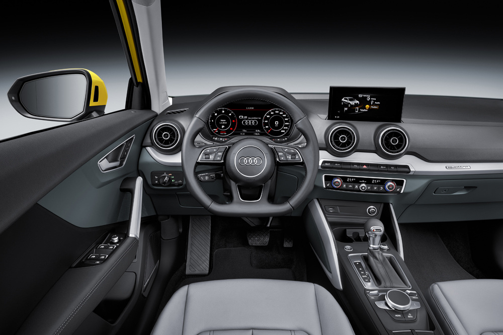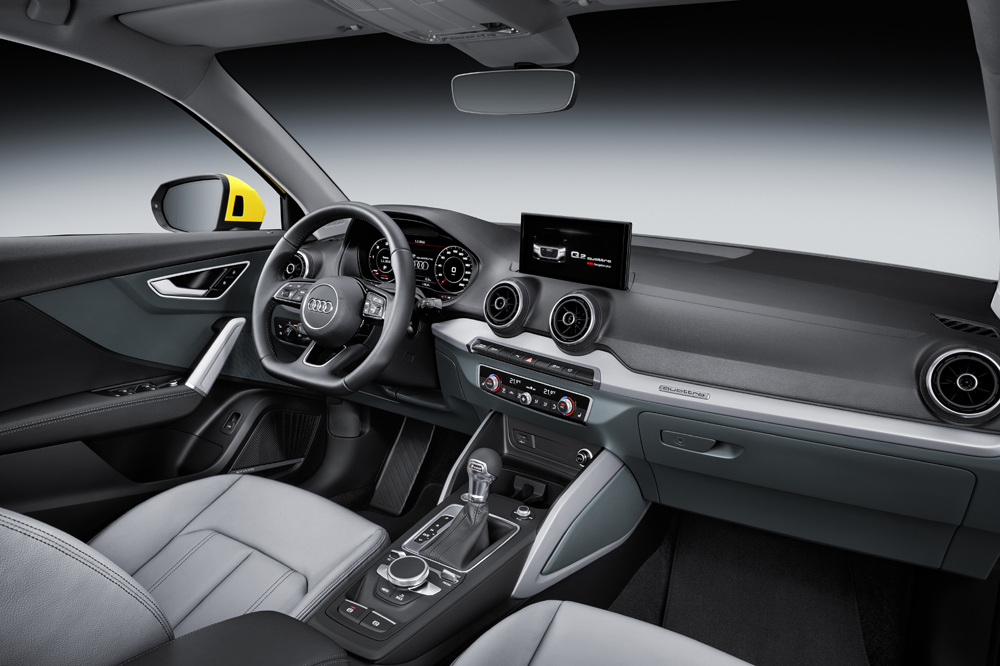Nos encontramos ante un crossover con 4,19 metros de longitud, 1,79 metros de anchura y 1,51 metros de altura, así como una batalla de 2,60 metros. El nuevo Audi Q2 combina algunos detalles de diseño del Audi A1 con otros de modelos superiores. El interior es propio de Audi, por lo que combina un salpicadero bicolor, un volante de tres radios, una consola minimalista, una enorme pantalla que comanda todo el sistema de infoentretenimiento, el head-up display y el Audi virtual cockpit como opcional, son los detalles más destacados.