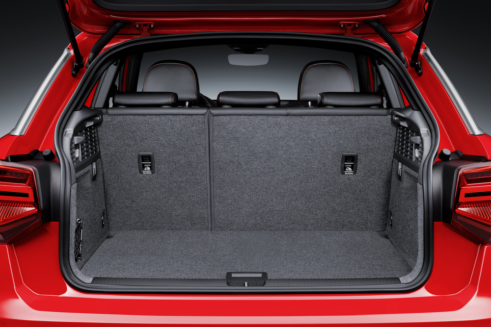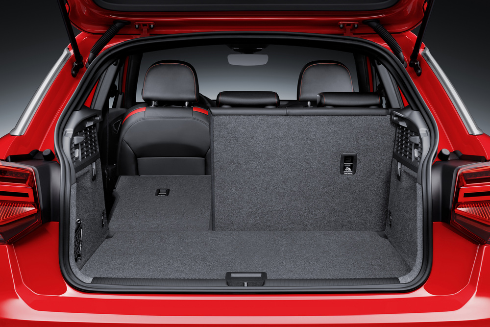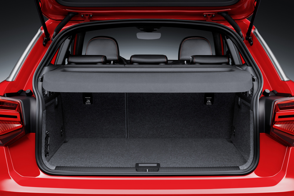 La parrilla prominente, un parachoques definido por la parrilla inferior, los faros con tecnología LED, una altura de cintura elevada y una zaga realmente sorprendente y no basada en ningún otro modelo. Los faros cuadrados recuerdan a los del Volkswagen Polo, el difusor trasero, las protecciones íntegras y el pequeño spoiler integrado completan el exterior del Q2 2016. La capacidad de carga, por su parte, oscila entre los 405 y los 1.050 litros si se abate la fila de asientos posterior.