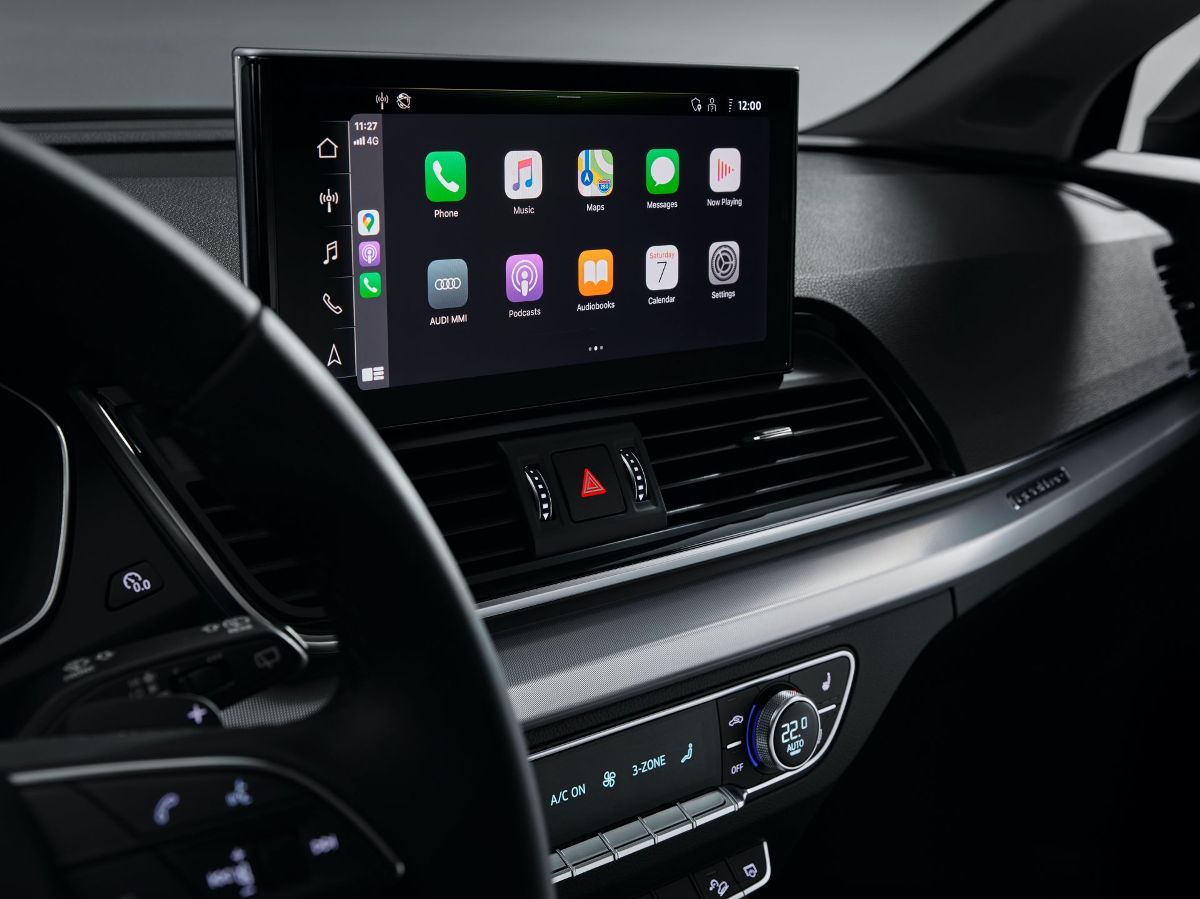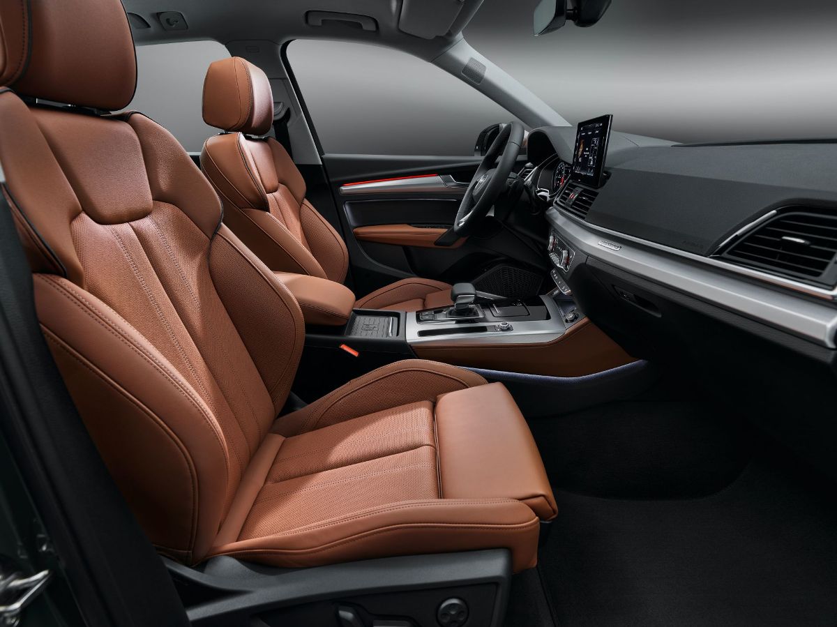 Una vez en el interior del Audi Q5 2021, destaca la pantalla central de 10,1 pulgadas del sistema MMI touch o el sistema Audi Virtual Cockpit de 12,3 pulgadas que se puede completamente con un Head-Up Display a color. También se han integrado algunas soluciones de conectividad avanzada, como el navegador, acceso a la nube y servicio car-to-x. También es de serie la radio digital con Alexa de Amazon, se pueden memorizar hasta seis perfiles de usuario con configuraciones variadas como la posición de los asientos o el climatizador, y se podrán sumar diferentes funciones y actualizaciones a través de descarga online una vez adquirido el vehículo.
