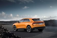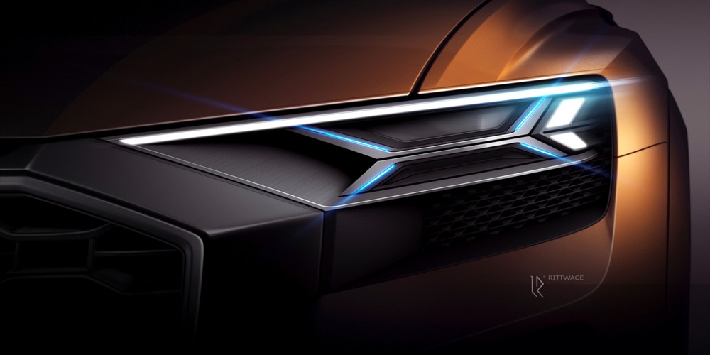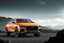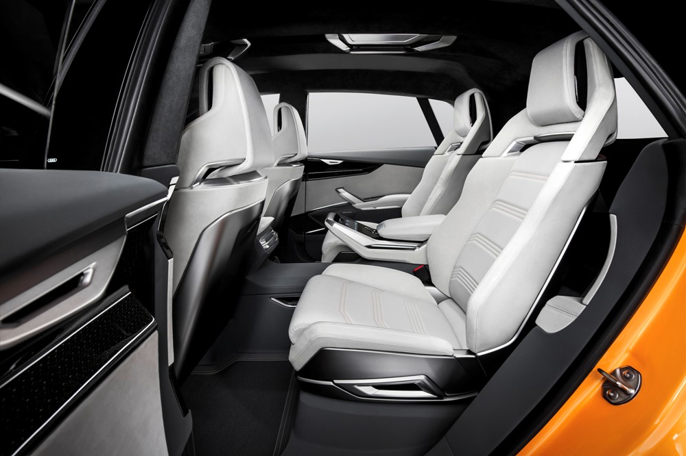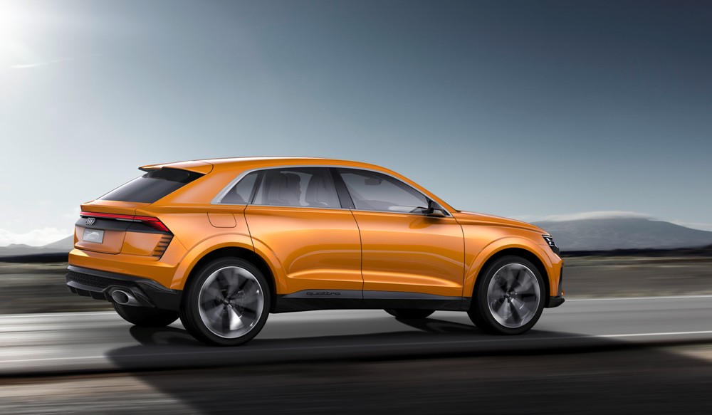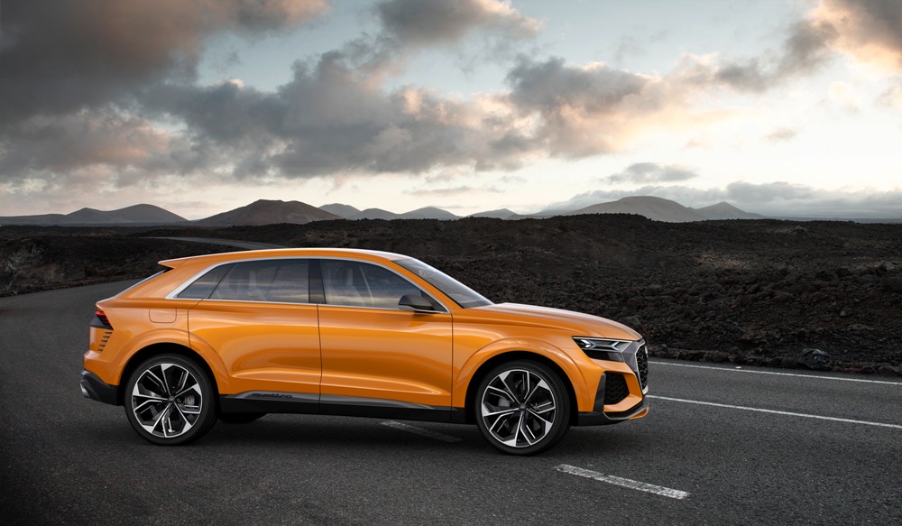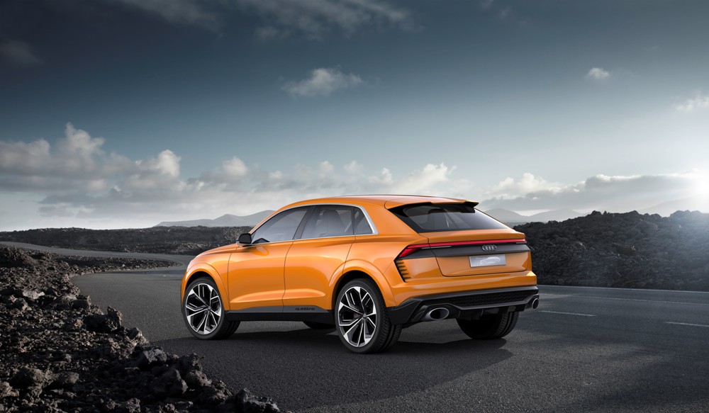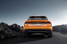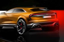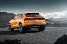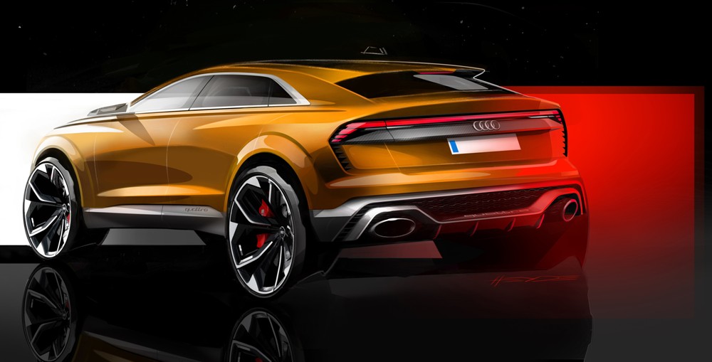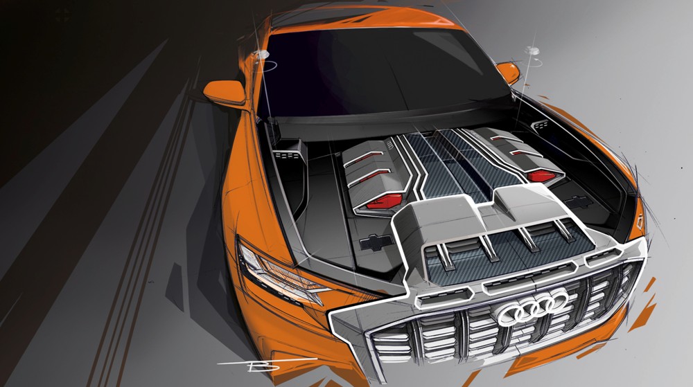 Pero antes de entrar en detalles, el exterior del Q8 sport concept presenta una imagen muy similar a la del Audi Q8 concept presentado durante el pasado Salón de Detroit 2017. Con 5,02 metros de longitud, 2,04 metros de anchura y 1,70 metros de alto, así como una distancia entre ejes de 3 metros, presenta un frontal agresivo gracias a una parrilla prominentes, marcadas entradas de aire en el parachoques y la firma lumínica característica. El lateral ofrece unos marcados pasos de rueda y una línea inferior definida junto a una altura de cintura elevada. Mientras tanto, la zaga, de estilo coupé, incluye un alerón, un carismático grupo óptico y un deportivo difusor con salidas de escape gemelas.