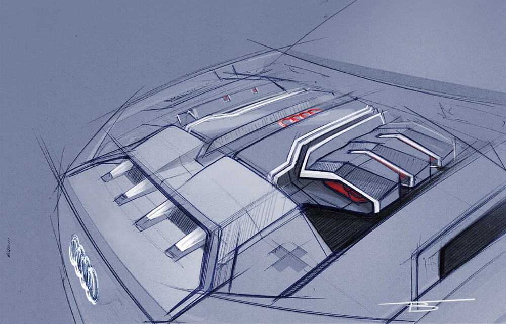 El interior, sin embargo, ofrece espacio para cuatro ocupantes y un maletero con 630 litros de capacidad. El diseño sigue mostrando algunos rasgos prototípicos, con líneas definidas y hasta tres pantallas que gestionan las diferentes funciones del vehículo. Además del conocido Audi virtual cockpit y el head-up display con apariencia analógica, se han añadido otras dos pantallas. La primera, para el sistema de infoentretenimiento MMI, y la segunda para el climatizador, ambas táctiles y que permiten liberar el habitáculo de interruptores.