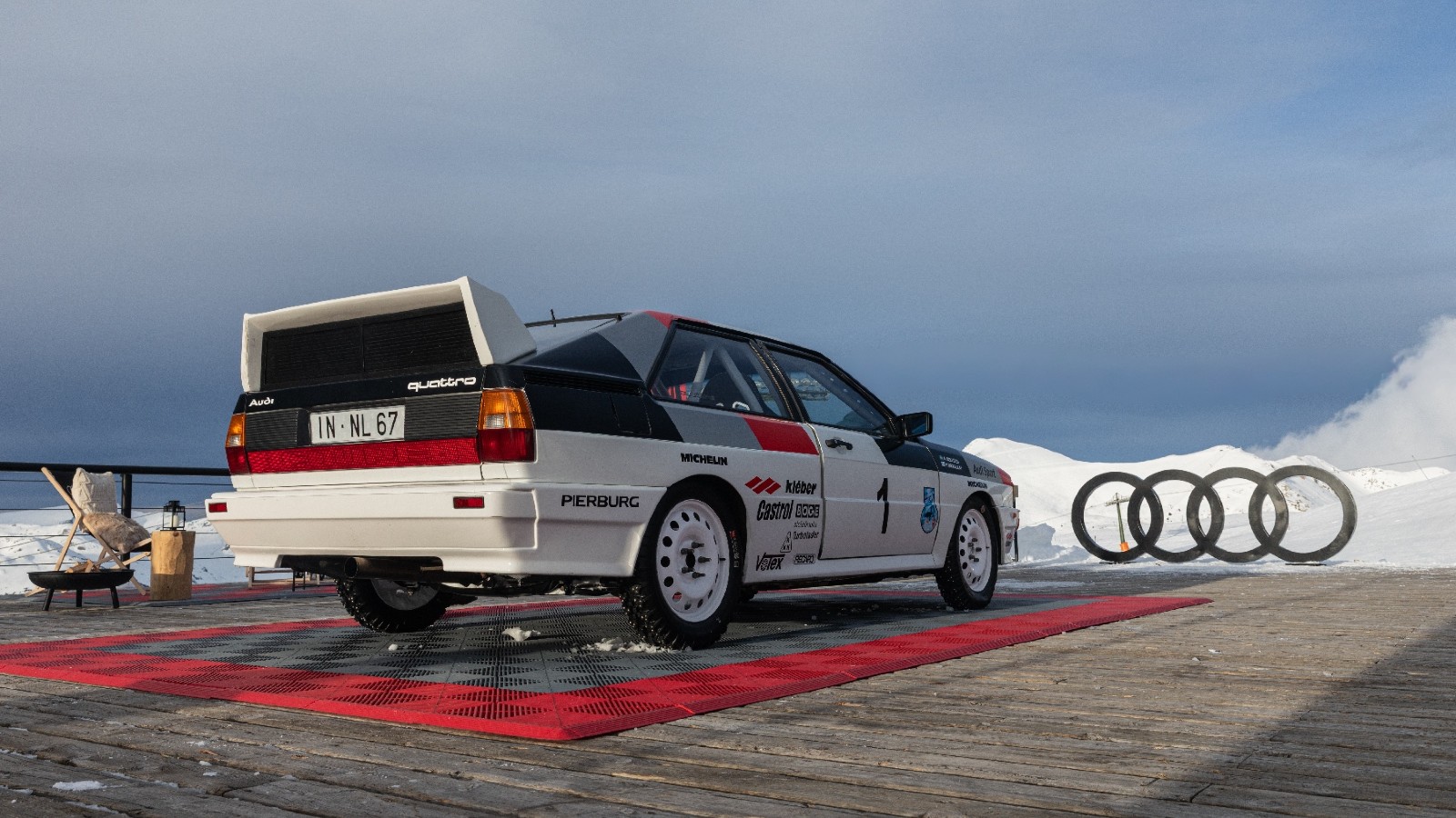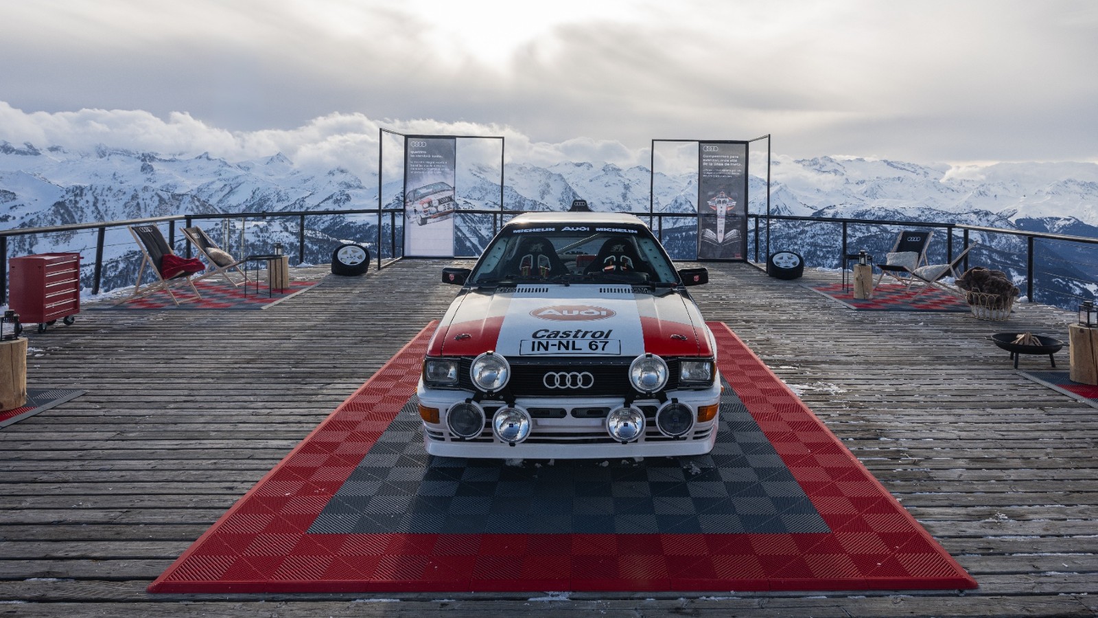 La jornada se articuló en torno a un circuito diseñado para trasladar la filosofía quattro desde la conducción hasta el esquí. Comenzó en el Audi Garage, enclavado en el mirador de Baqueira a 2.500 metros de altitud, donde se exhibió una réplica del Audi quattro que usaron Hannu Mikkola y Arne Hertz en el Rally de Suecia en 1981. El coche protagonizó una exhibición dinámica sobre la nieve, en la que todos pudieron comprobar el funcionamiento del sistema quattro.