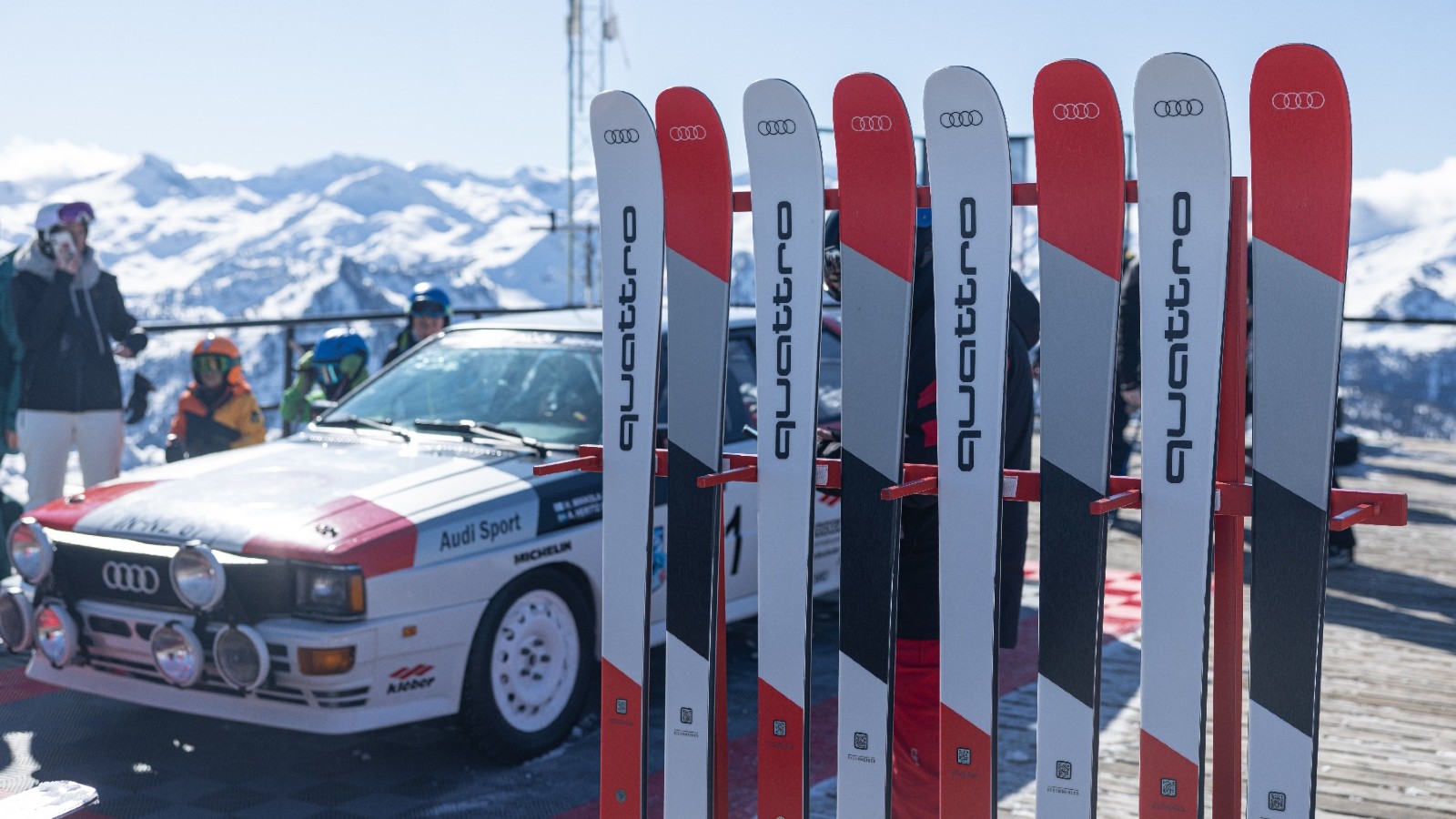 Posteriormente, en el Audi Garage, un técnico especializado cuidó el encerado de los esquís preparados para afrontar el descenso, utilizando ceras ecológicas. Los asistentes pudieron probar los esquís Audi Salomon quattro de edición limitada, cuyo diseño gráfico reproduce la icónica decoración del coche de rally, subrayando la conexión entre las raíces de la tracción quattro en competición y la experiencia en pista.