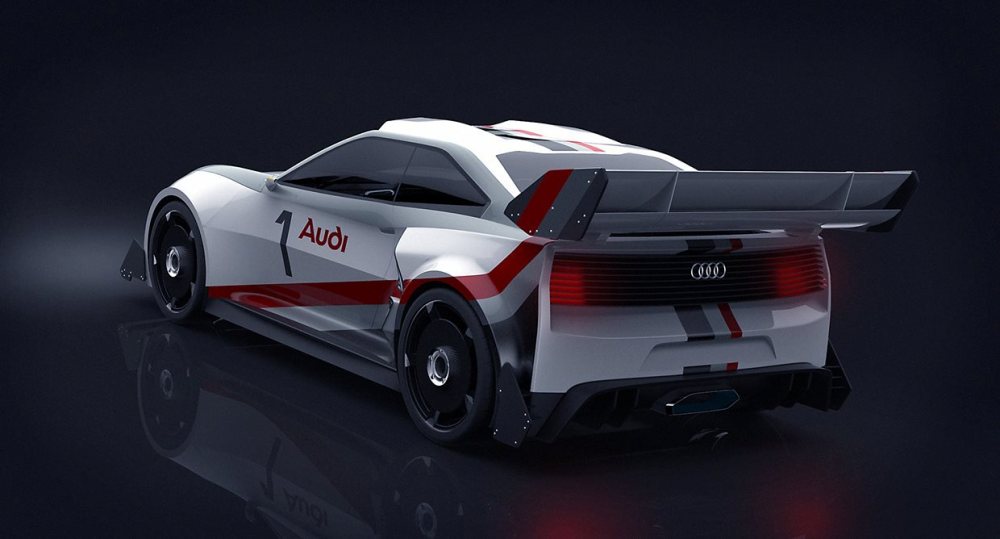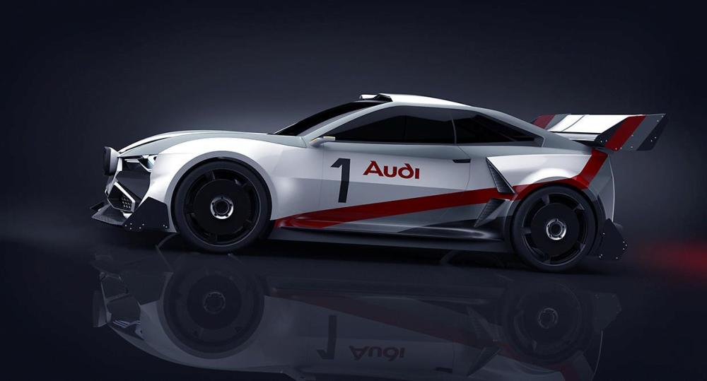 Un frontal anguloso con numerosas entradas de aire que reduce el tamaño de la parrilla central característica de Audi. El conjunto de faros central es un homenaje al logotipo de la firma con sede en Ingolstadt y el contraste perfecto entre lo clásico y la tecnología LED más actual. Las enormes llantas parcialmente cerradas, las entradas de aire laterales, el splitter, el difusor y el enorme spoiler trabajan la aerodinámica, mientras que el estilo en la zaga queda patente con la parrilla donde alberga los faros traseros.