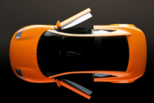 Visto desde el lateral, unas llantas de seis radios, pasos de rueda grandes y una sección inferior en color negro. La línea del techo también presentaba una importante caída hacia el extremo posterior, con espejos retrovisores montados sobre las puertas, tiradores integrados y una tapa para el depósito de combustible con un estilo muy diferenciar. La carrocería mostraba líneas muy limpias y elegantes, un diseño muy característico de productos de la década de 1990. Por último, la zaga revelaba una luneta posterior vertical y eléctrica, una cubierta para el motor plana, dos pilares C muy inclinados y un grupo óptico de una sola pieza que recorría todo el ancho de la carrocería. Las salidas de escape quedaban integradas a la perfección en el parachoques trasero.