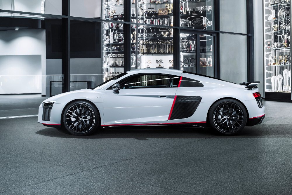 Su puesta de largo tuvo lugar en el paddock de las 24 Horas de Nürburgring, y cuenta, entre otras cosas, con un paquete técnico que incluye la dirección dinámica, el sistema de control adaptativo de la amortiguación Audi magnetic ride y los faros láser de la marca. Además, el acabado tricolor de la carrocería incluyen el gris Suzuka para la base, y el negro mythos y el rojo Misano para los diferentes detalles.