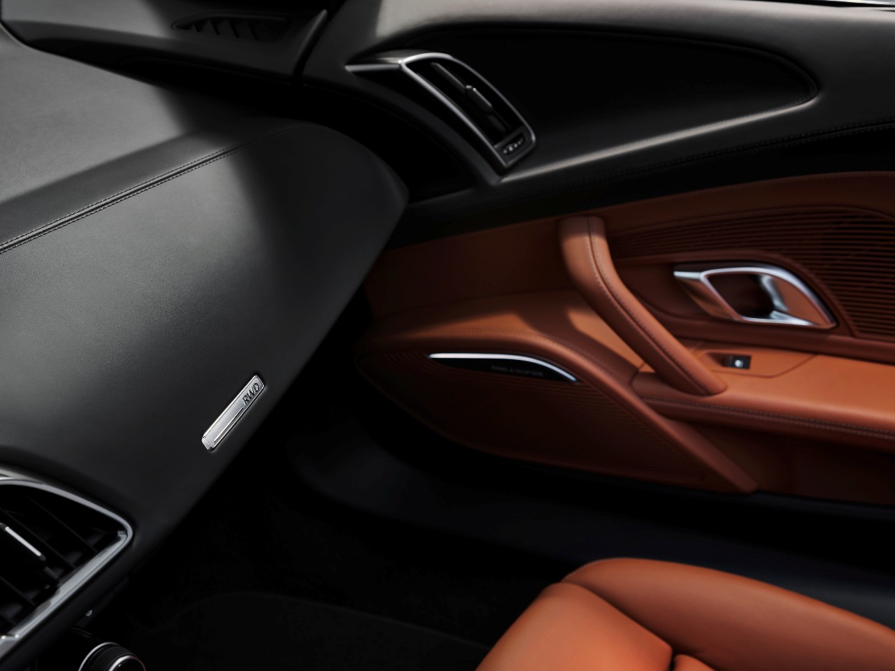 El nuevo R8 V10 Performance RWD equipa un diferencial mecánico de deslizamiento limitado que distribuye el par en función de la situación de conducción. Como en todos los R8, la carrocería está construida en aluminio acompañado de elementos en material plástico reforzado con fibra de carbono. De este modo, se mantiene un peso de solo 1.590 kilos en la versión Coupé y de 1.695 kg para el Spyder.