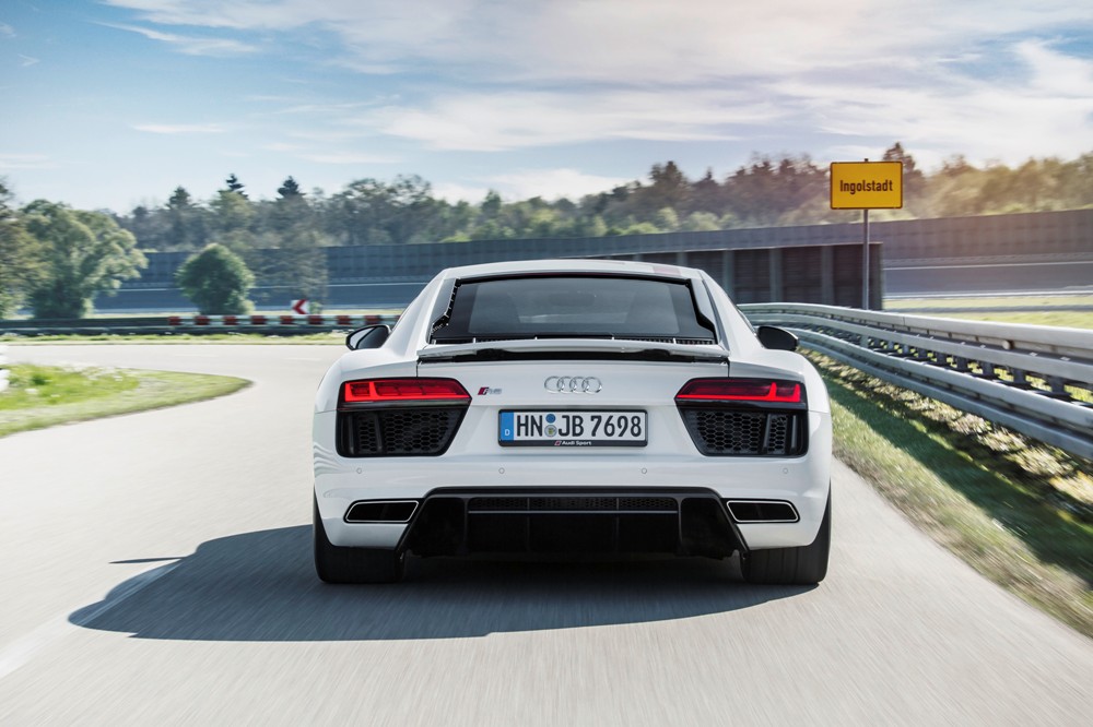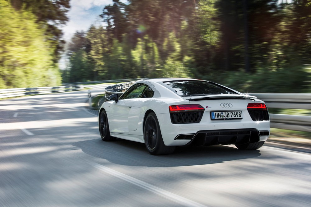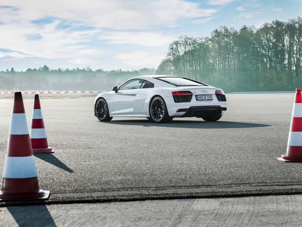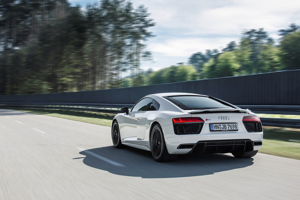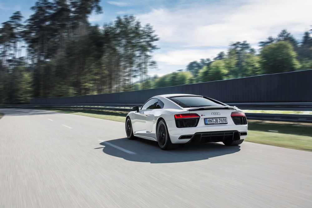 Ambos, tanto el coupé como el Audi R8 Spyder, equipan una caja de cambios automática de doble embrague que canaliza la potencia exclusivamente al tren posterior. Este simple detalle hace tan especial al R8 V10 RWS y le permite recortar distancias con el Lamborghini Huracán LP580-2, además de ser capaz de reducir el peso en 50 kilogramos (1.509 kg) con respecto a la versión estándar, ya que no requiere de diferentes elementos que componen el sistema de tracción total.