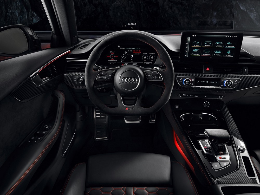 En el habitáculo, los cambios se centran en el nuevo sistema operativo del MMI Touch con pantalla táctil de 10,1 pulgadas. Una pantalla que proporciona un feedback acústico y asume las funciones del anterior mando giratorio de la consola central, que desaparece. El sistema cuenta con modos RS específicos, en los que el usuario puede ver por ejemplo la temperatura de los diferentes componentes del sistema de transmisión, las fuerzas G máximas o información sobre la presión y la temperatura de los neumáticos.