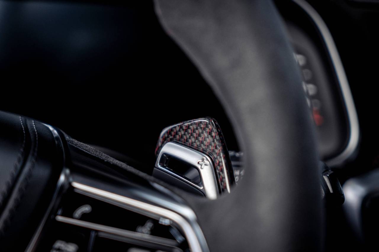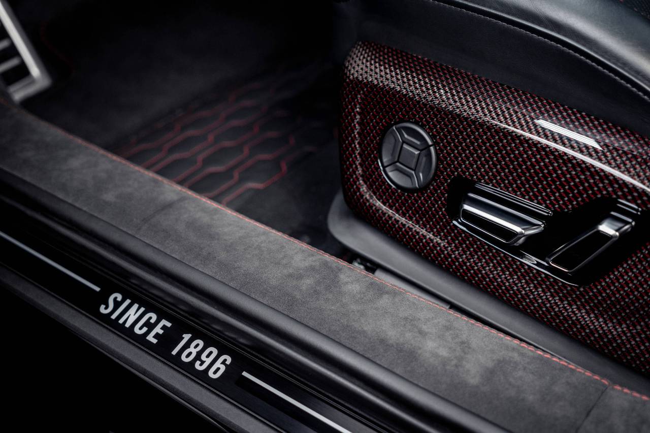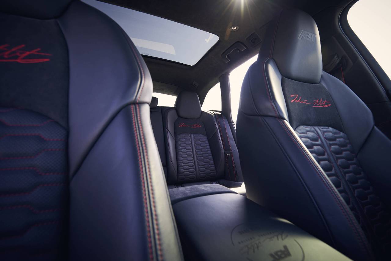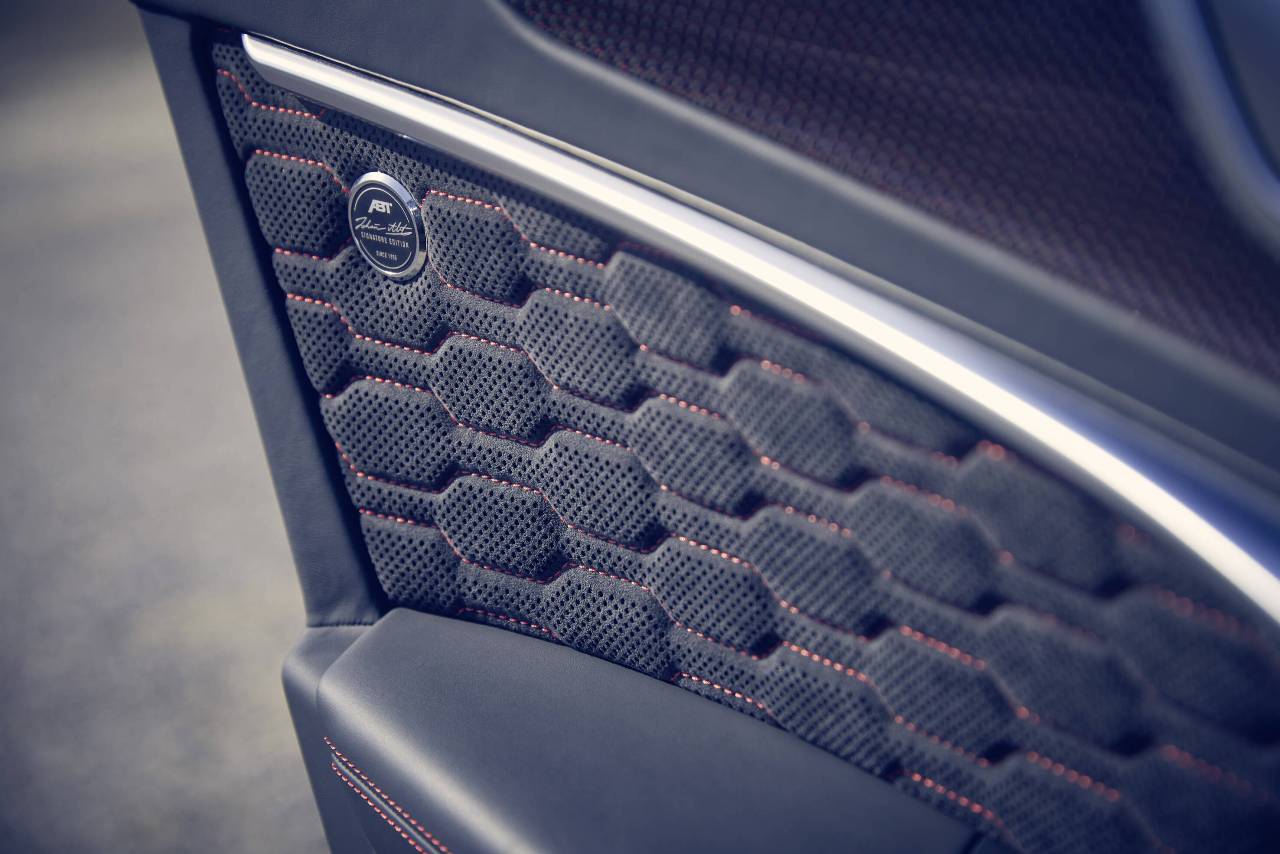 La carrocería destaca con su estructura de carbono única Signature Carbon Red, con detalles rojo metalizado en todo el vehículo. Además, las entradas de aire, el splitter delantero, el faldón trasero y las llantas forjadas de 22 pulgadas, con un ahorro de peso de hasta 3,5 kg por rueda, han sido diseñadas en exclusiva para esta edición especial. El toque final lo otorga el sistema de escape ABT con cuatro salidas de acero inoxidable negro mate de 102 mm.