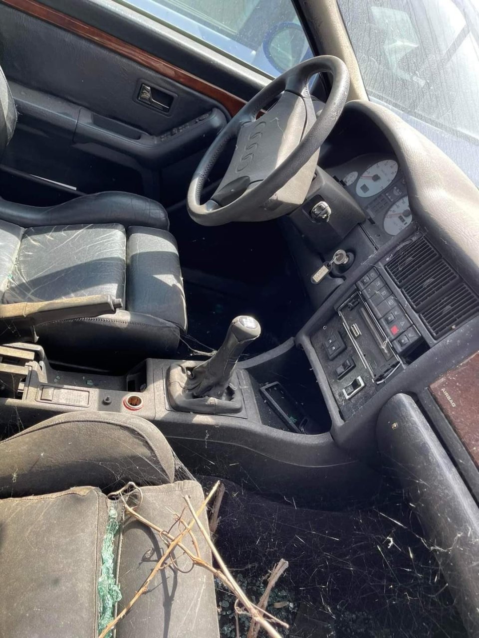 Según Mané Naranjo, autor de las fotos de este Audi RS2 Avant en el desguace, la chatarrería no lo vende al completo, sino que lo hace por piezas. Como se aprecia en las fotos, el coche está entero, a pesar de los golpes en el parachoques delantero y algunas abolladuras en la chapa. El interior parece peor estado, aunque la mayor parte de lo que se aprecia en las imágenes es suciedad. También podemos ver que la ventanilla del lado del acompañante habría estallado, a juzgar por los restos de cristal en los asientos de cuero, y que también tiene la llave original en el contacto.