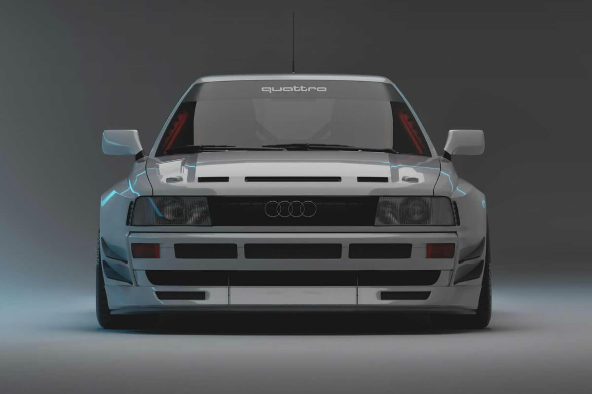 Si lo comparamos con el Audi 80 original, la carrocería se ha ensanchado notablemente para acomodar el ancho de vías elegido. En la parte frontal, el capó luce unas llamativas entradas de aire y tanto el paragolpes como las llantas de cinco radios parecen haber sido sacados de un vehículo de competición. En la zaga nos topamos con un alerón achatado y si bajamos la mirada contemplaremos el conjunto formado por el difusor pintado de negro enmarcado por las dos grandes salidas de escape ovaladas, el paragolpes y las aletas traseras.