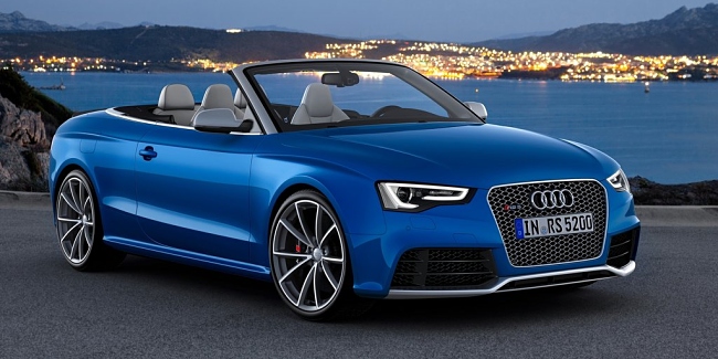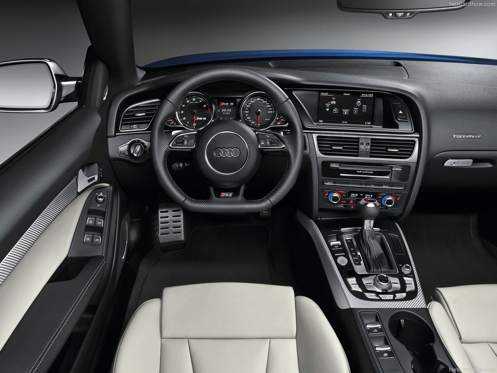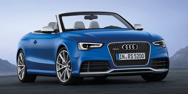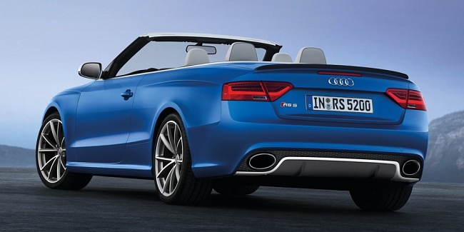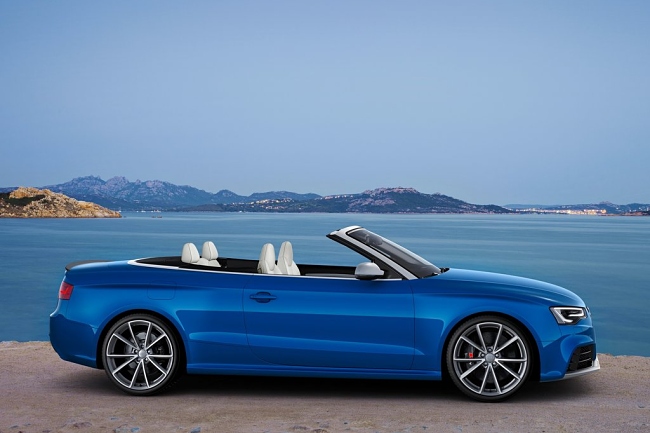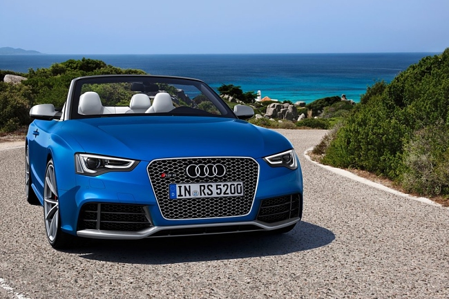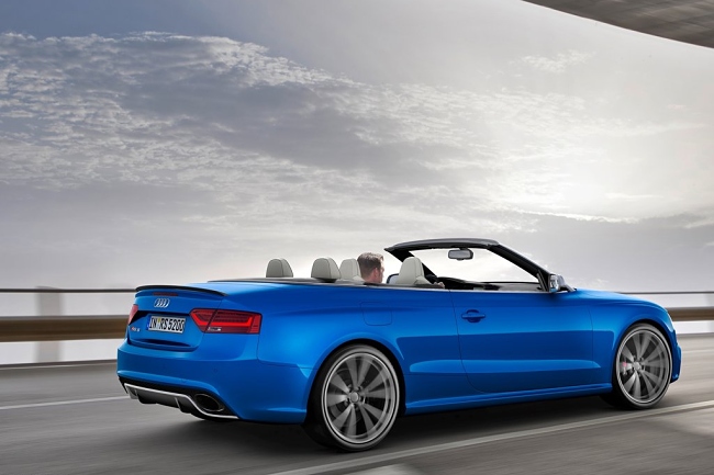 Estéticamente, el nuevo RS5 Cabrio se asienta dos centímetros más bajo que un A5 Cabrio normal. El frontal del vehículo está copado por unas entradas de aire de generosas dimensiones y bajo ellas se sitúa un ‘spliter’ rematado en color aluminio mate. De serie monta unas llantas de 19 pulgadas y opcionalmente habrá disponibles unas de hasta 20 pulgadas. En la zaga encontramos dos enormes salidas de escape y un difusor del mismo color que el del alerón delantero. La capota de lona se puede abrir hasta una velocidad de 50 Km/h y tan sólo resta 60 litros al maletero cuando está plegada –de un total de 380 litros-.