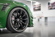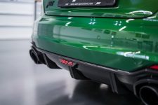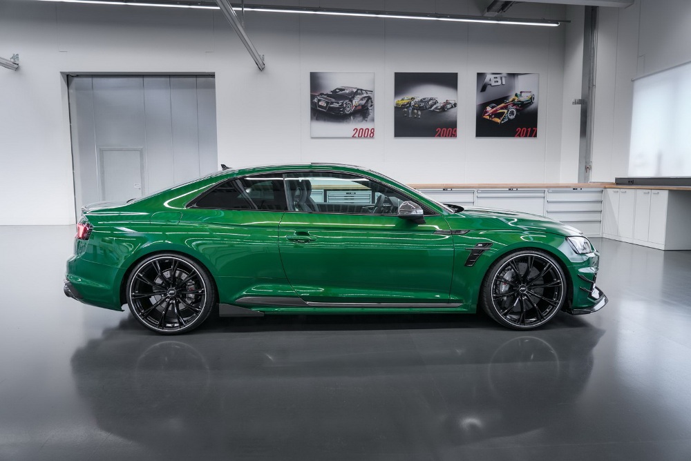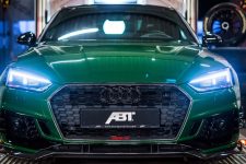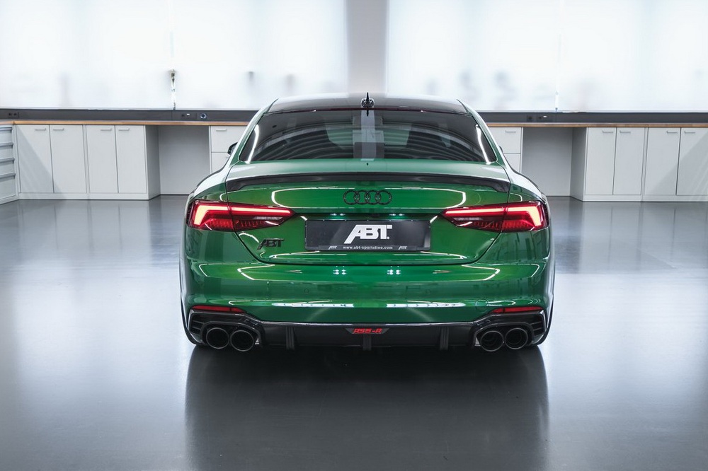 A nivel estético, el Audi RS5-R ABT cuenta con un color verde que baña su carrocería, así como una parrilla retocada, un faldón delantero, taloneras laterales, nuevas salidas de aire en los pasos de rueda, un alerón en el maletero y un difusor trasero con salidas de escape cuádruples integradas. Por último, un conjunto de llantas de aleación de 21 pulgadas reemplazará a las originales de 19 pulgadas y estarán calzadas con neumáticos 275/25.