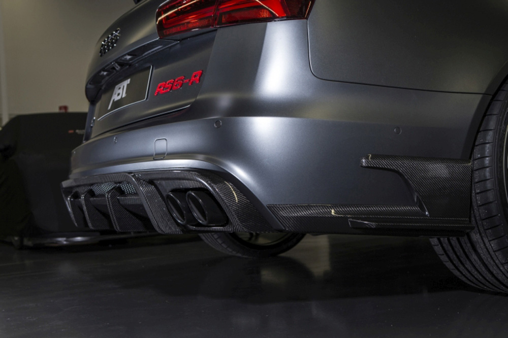 Habitualmente nos referimos a la variante de producción como un ‘lobo con piel de cordero’, ya que bajo su relativamente discreta imagen exterior se esconde un vehículo de elevadísimas prestaciones. El RS6-R de ABT Sportsline viene a ser el caso opuesto, pues gracias al agresivo kit estético que incorpora, no deja lugar a dudas. El paquete aerodinámico está compuesto por numerosos apéndices (tanto en el frontal como en la zaga), cuenta con un difusor más agresivo, nuevas taloneras, un alerón sobre el portón y nuevas salidas de aire en las aletas delanteras. Tampoco faltan unas llantas de aleación de 22 pulgadas de diámetro.