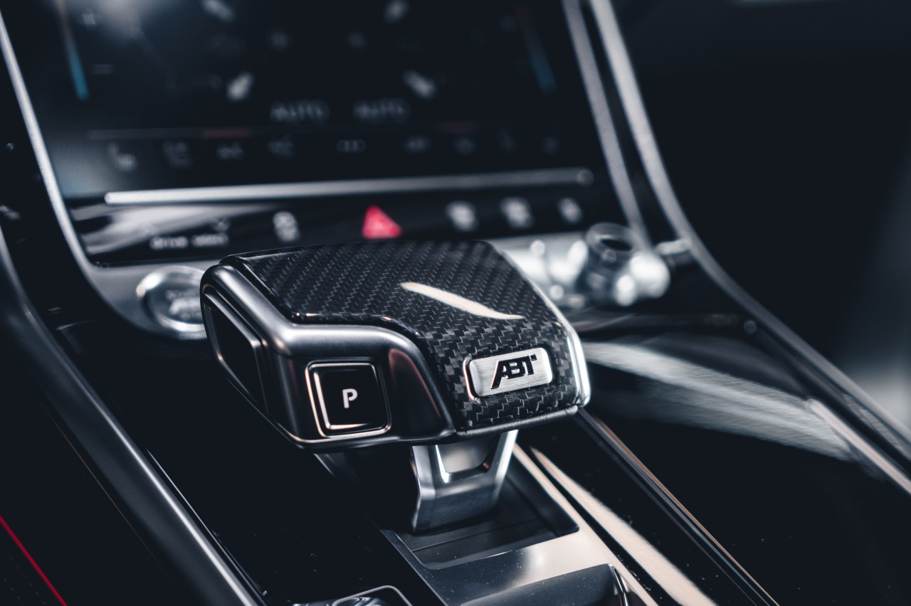 En el interior, encontramos más fibra de carbono en el pomo del cambio, la insignia de ABT en el volante forrado en alcántara y en los umbrales de las puertas. Opcionalmente, se pueden añadir elementos como un salpicadero entero de fibra de carbono, una tapicería de cuero específica y alcántara con el logo ABT en rojo o ruedas de invierno ABT GR.