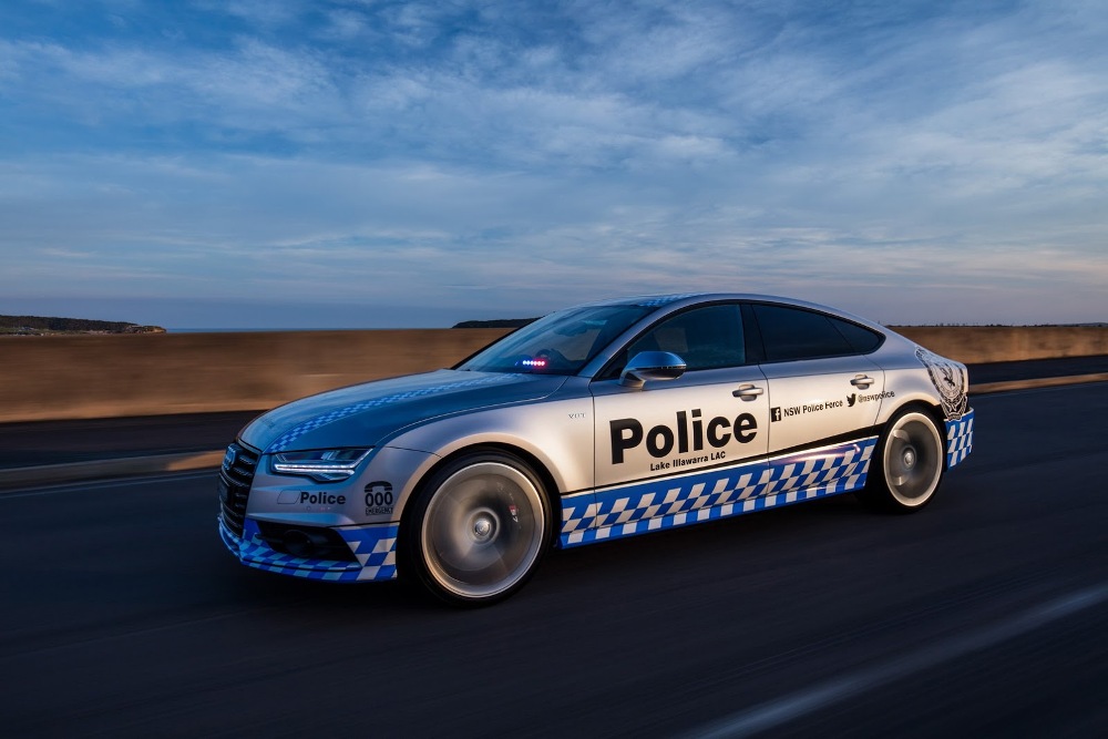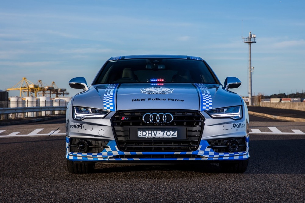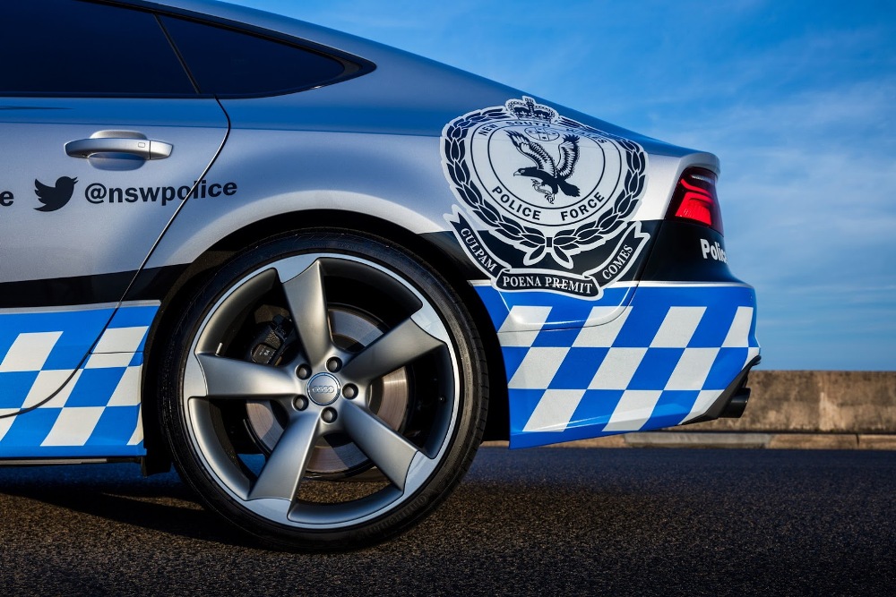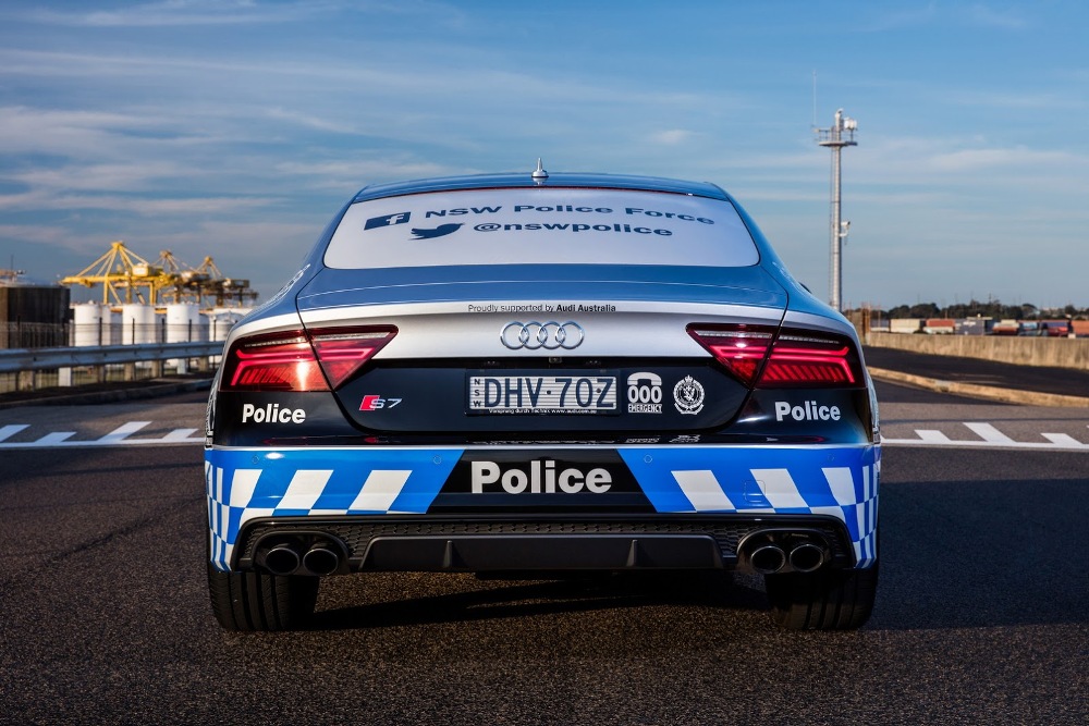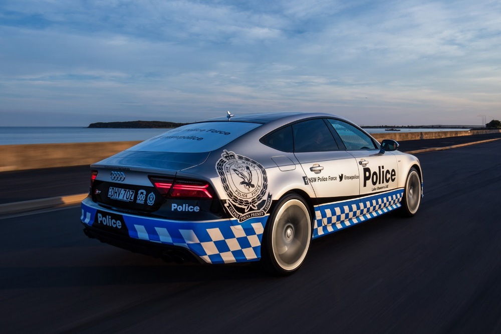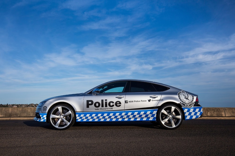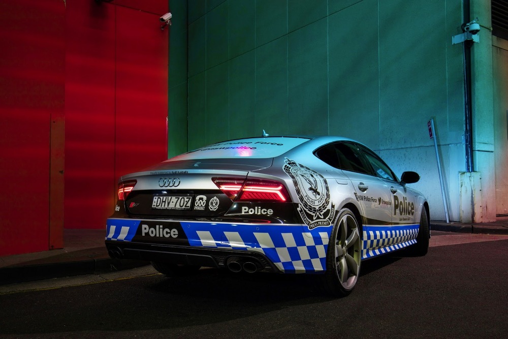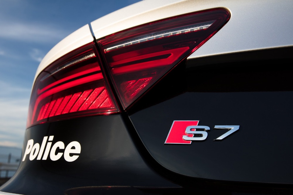 El Audi S7 Sportback de la Policía australiana forma parte de un programa con una duración de 12 meses y ha sido adornado con una decoración única seleccionada por los fans de la página Audi Australia de Facebook. Esta decoración está compuesta por tramado a cuadros blancos y azules en el tercio inferior de la carrocería, así como numerosas etiquetas de la Policía, incluyendo enlaces a páginas de medios sociales del departamento.
