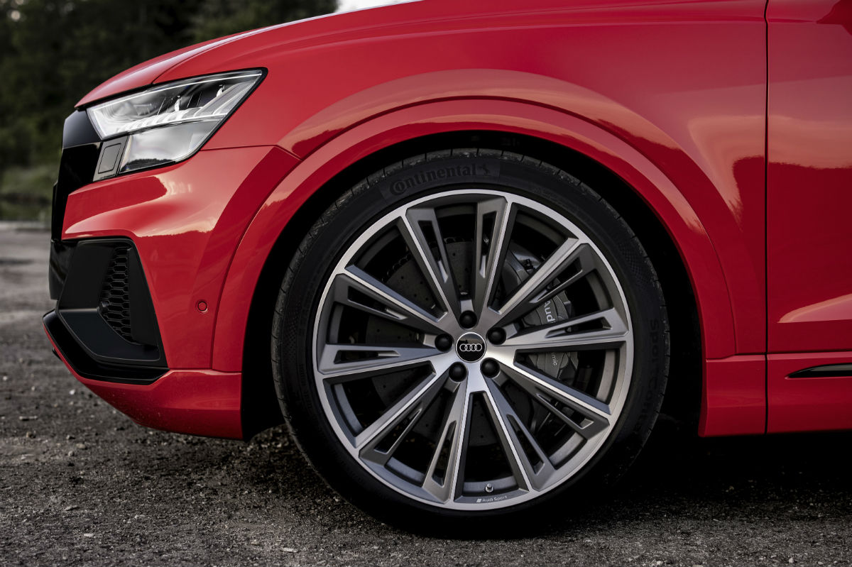Éstos se ocultan tras unas llantas de aleación de 20 pulgadas en el caso del Audi SQ7 2021, mientras que en el SQ8 2021 son de 21. Eso sí, en opción se pueden elegir unas de hasta 23 pulgadas. Son parte del conjunto de elementos que transmiten el carácter deportivo de estas versiones, y que incluye también la parrilla Singleframe con lamas dobles, el entramado de las entradas de aire, el acabado en aluminio de los retrovisores o las cuatro salidas de escape.