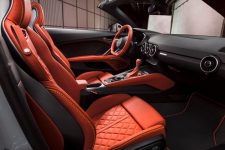 Por otro lado, el Audi TTS competition añade un toque atlético, con faros LED, placas en los umbrales de las puertas retroiluminados, cristales tintados en la versión coupé, alerón trasero fijo, pinzas de freno de color rojo, llantas de 20 pulgadas en color negro brillante y otros detalles del mismo color en el exterior. El interior recibe el paquete de cuero en diferentes colores, entre otros.