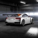 Muchas cosas nos llaman la atención de este brutal Audi TT. Lo primero es su imponente imagen, conseguida gracias a una carrocería ensanchada, paragolpes sobredimensionados y un imponente alerón posterior en la tapa del maletero. El vehículo mide 4,33 metros de largo y 1,97 de ancho, por lo que ha crecido 16 cm y 14 cm, respectivamente.