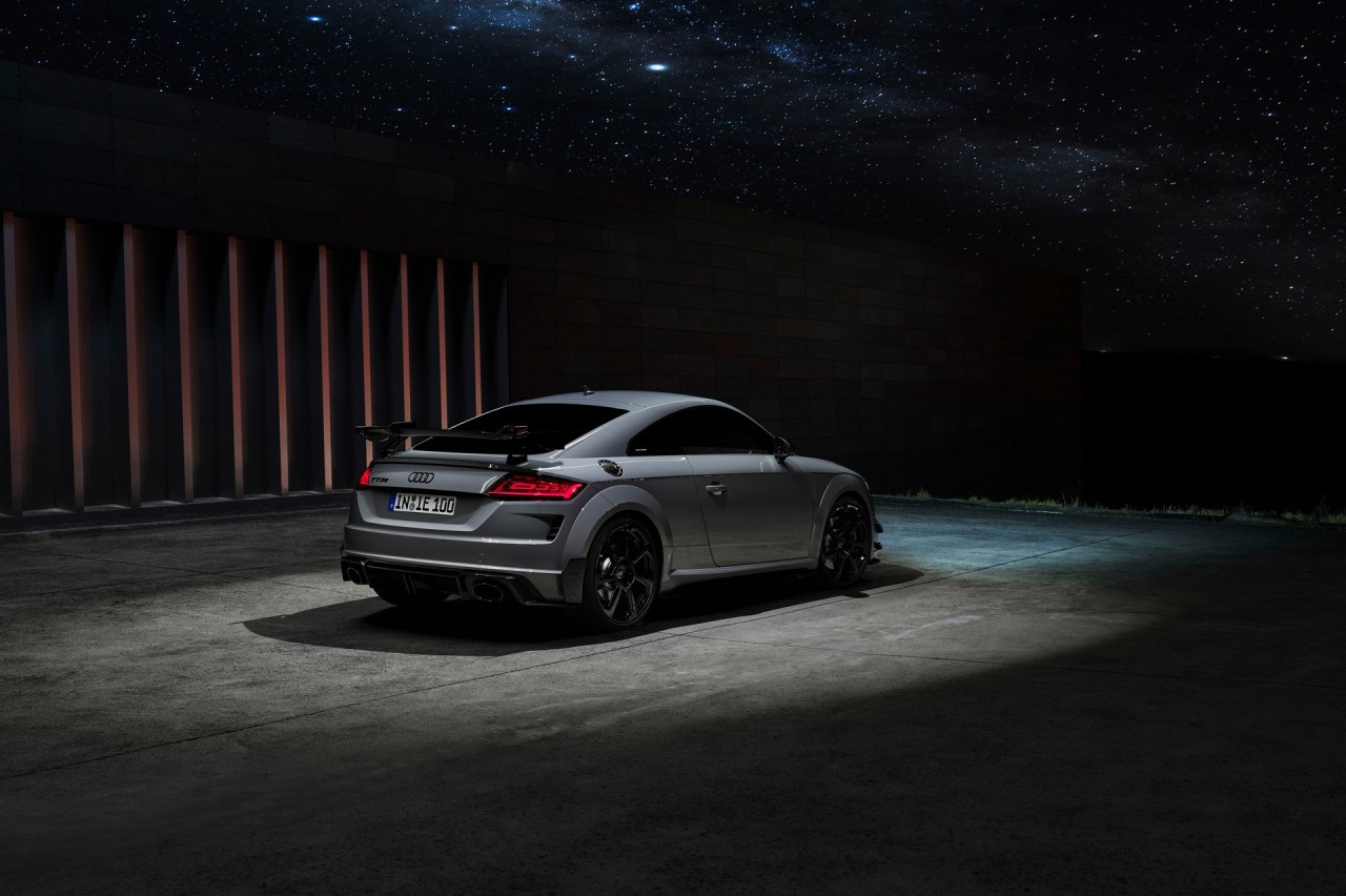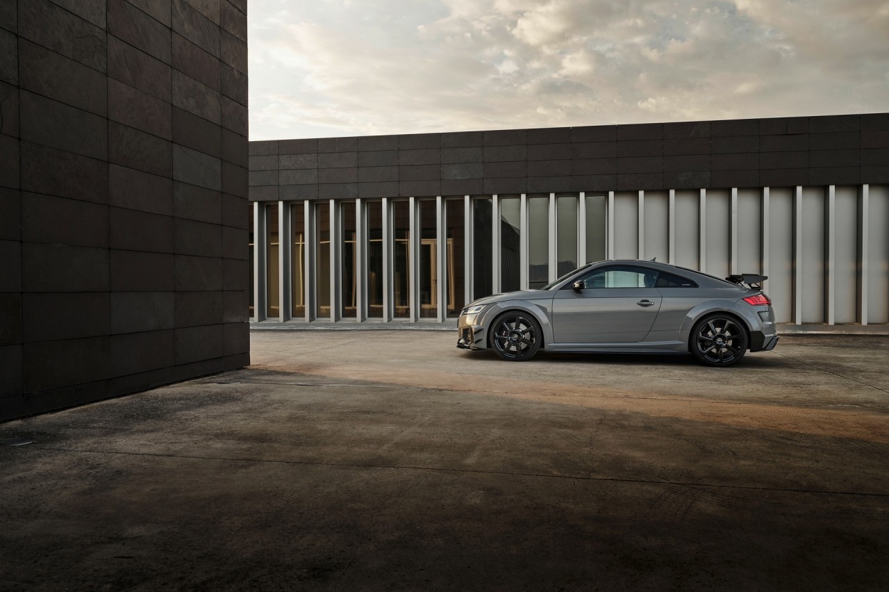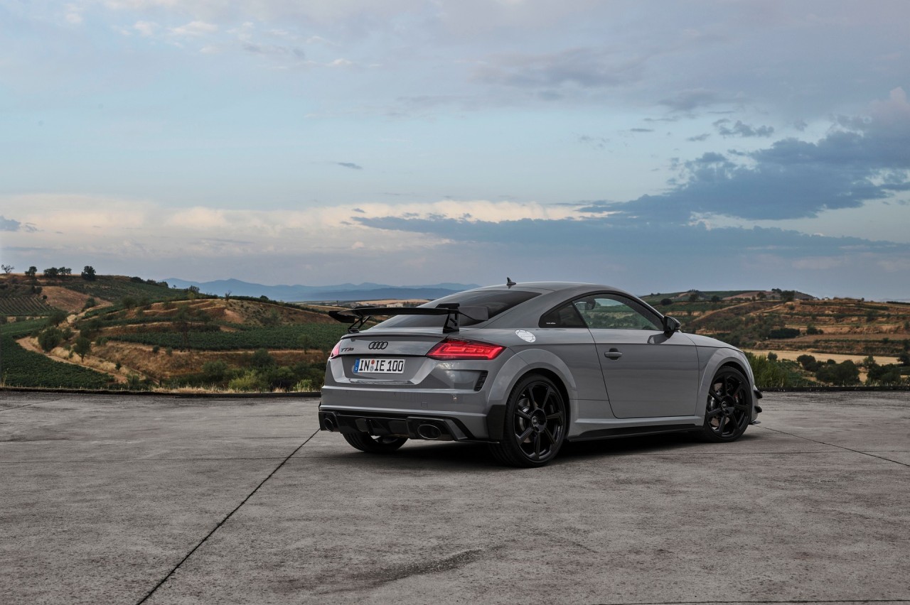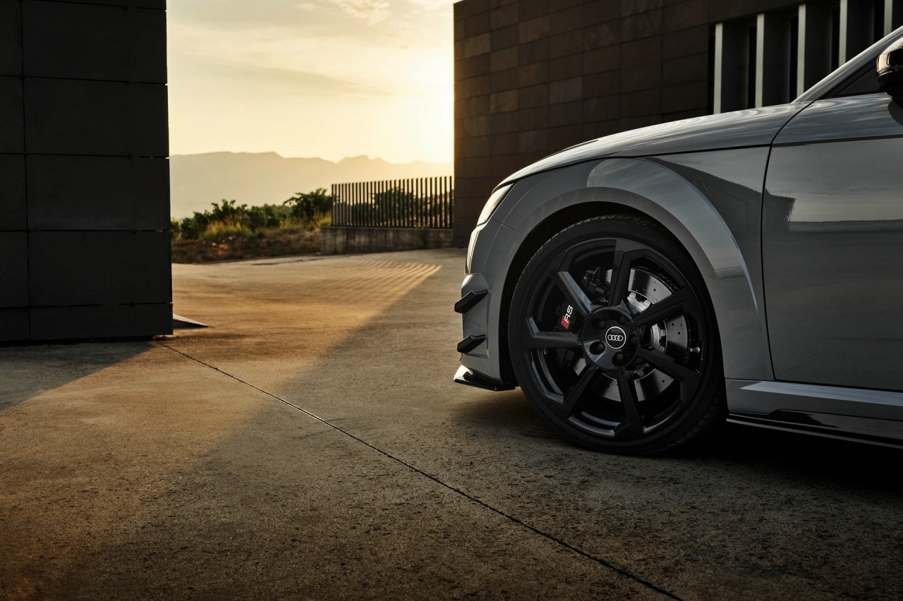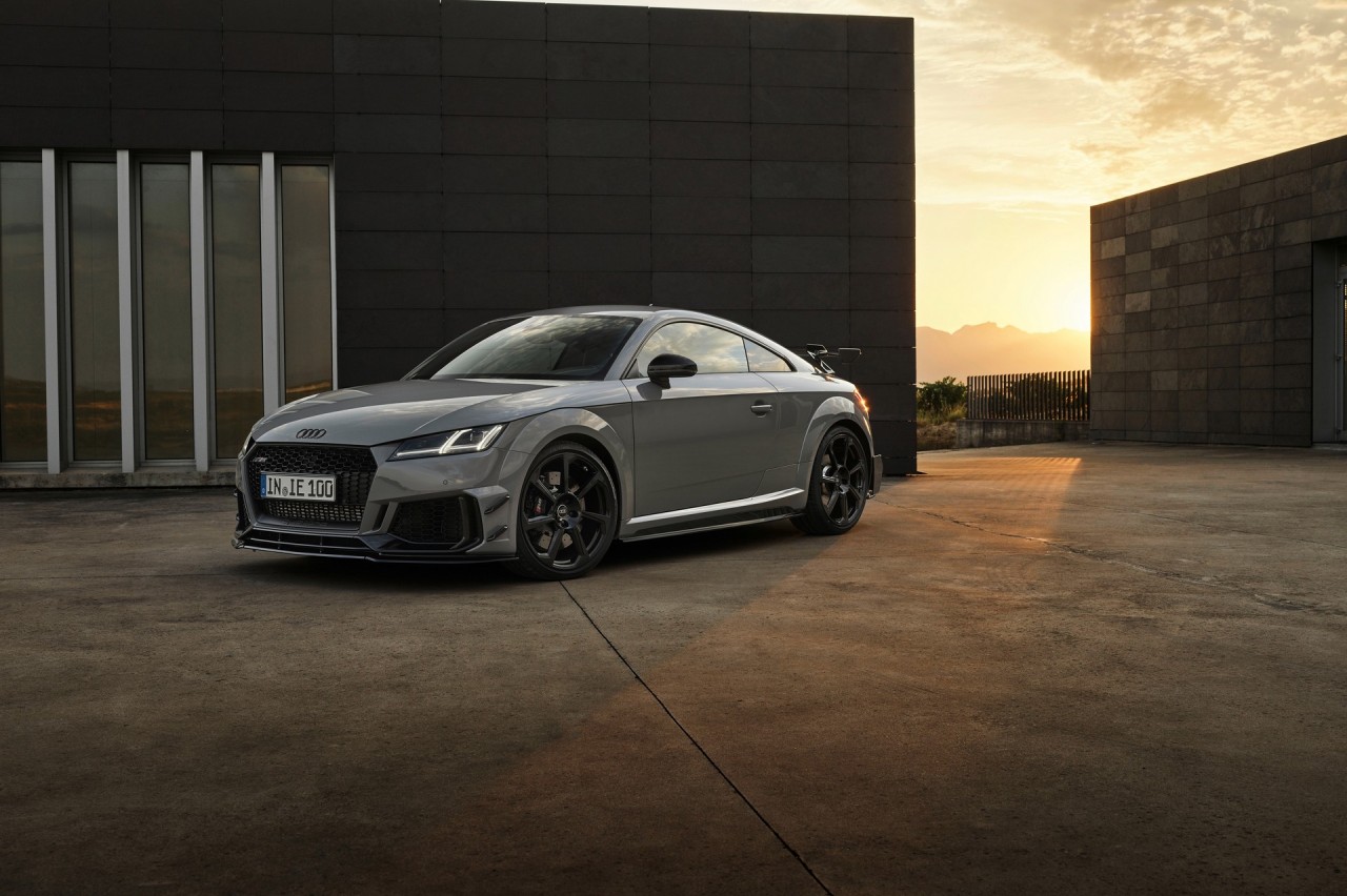 El centenar de ejemplares basados en las especificaciones del Audi TT RS Coupé (prueba) están terminadas en el famoso color Nardo Grey de Audi y vienen equipadas con los faros Matrix LED y una parrilla delantera en negro brillante con un marco negro mate. También podemos encontrar taloneras laterales, retrovisores e insignias en negro, cristales tintados y unas llamativas llantas de aleación de 20 pulgadas terminadas en negro brillante, con un diseño de siete radios sobre unas pinzas de freno también de color negro.