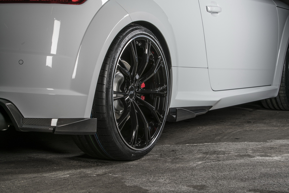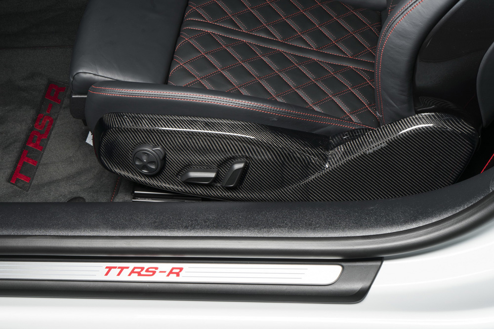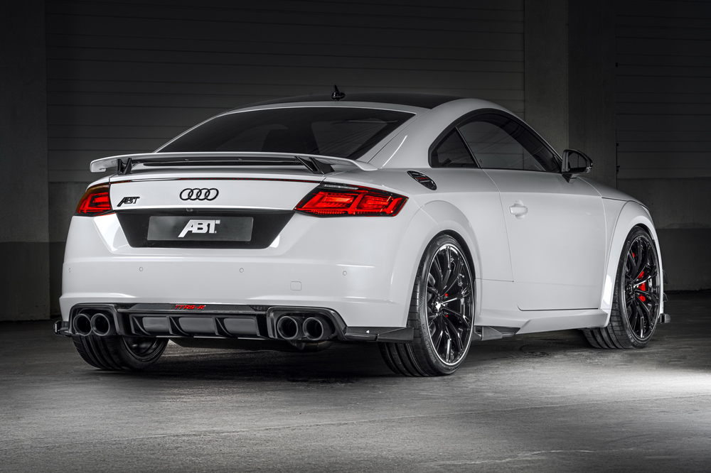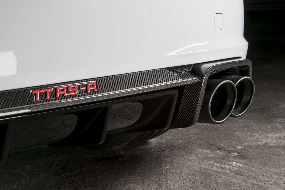 Pero ABT no se ha conformado con modificar el motor, también han creado un paquete estético para el TT RS compuesto por un nuevo faldón delantero, un marco diferente para la parrilla, taloneras más prominentes y un paragolpes trasero con un faldón y difusor más agresivos. Todos estos componentes están fabricados con fibra de carbono, por lo que no añaden mucho peso al conjunto. Los cambios se completan en el TT RS-R con una nueva línea de escape con cuatro salidas, con unas llantas de aleación de 20 pulgadas de diámetro y con unas suspensiones rebajadas.