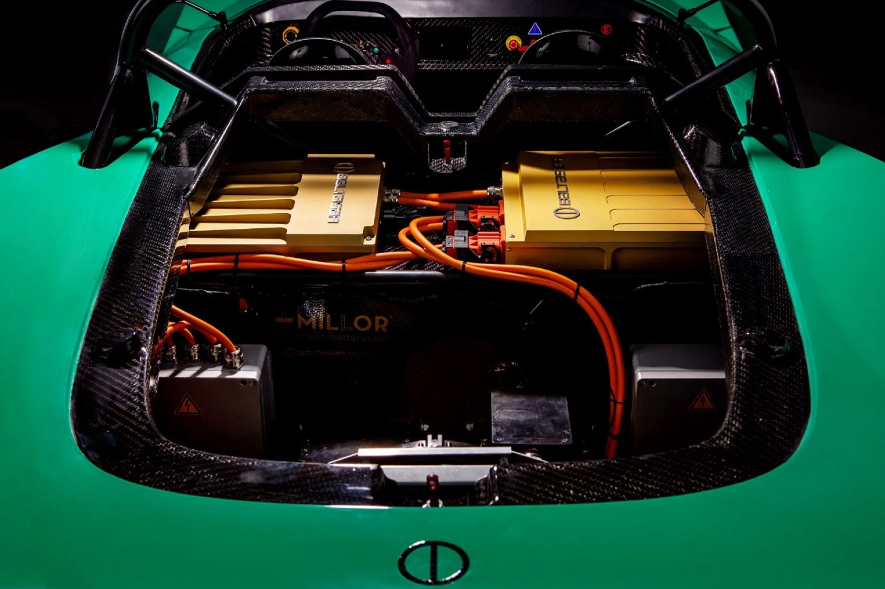 De hecho, gran parte de este se debe a su sistema de propulsión eléctrico. Emplea dos motores asociados al eje trasero que desarrollan 500 CV de potencia y 1.000 Nm de par máximo, suficiente para lanzarle de 0 a 100 km/h en menos de 2,5 segundos. Equipa unas baterías de capacidad no anunciada, pero de 250 kilos de peso, que le otorgan una autonomía de 482 kilómetros en la calle o de 40 minutos en circuito. Su sistema eléctrico de 700 voltios permite cargas rápidas para sumar 100 kilómetros de alcance en cinco minutos.