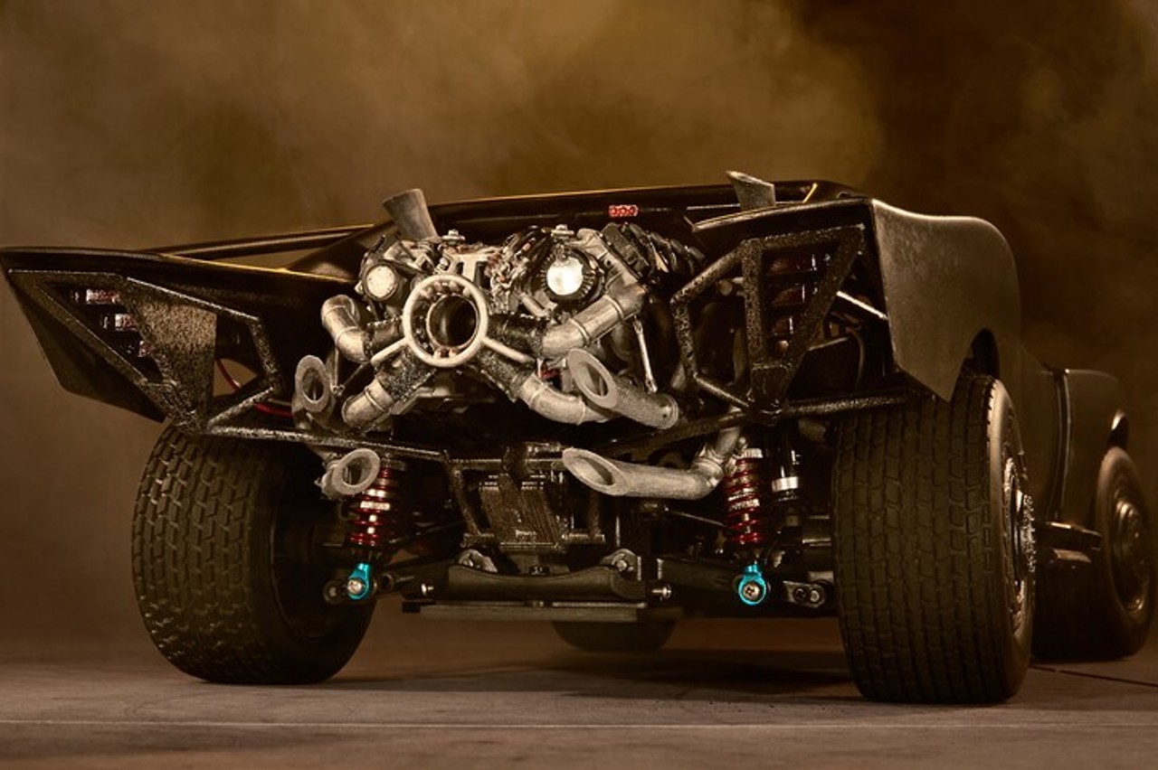 Con motivo de la nueva película de Batman que se estrenará el próximo año, Hot Wheels ha presentado un modelo radio control a escala 1:10 del vehículo que aparecerá en la nueva entrega de la saga. La réplica, que mide 50 centímetros, cuenta con suspensión completa, luces LED, efecto llama y un dispositivo que expulsa niebla en la parte trasera.