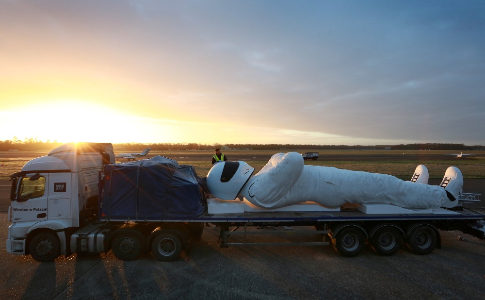 A continuación, una pequeña galería de imágenes del enorme Stig sobre el camión que recorrió Europa hasta llegar a Polonia.