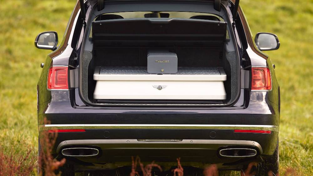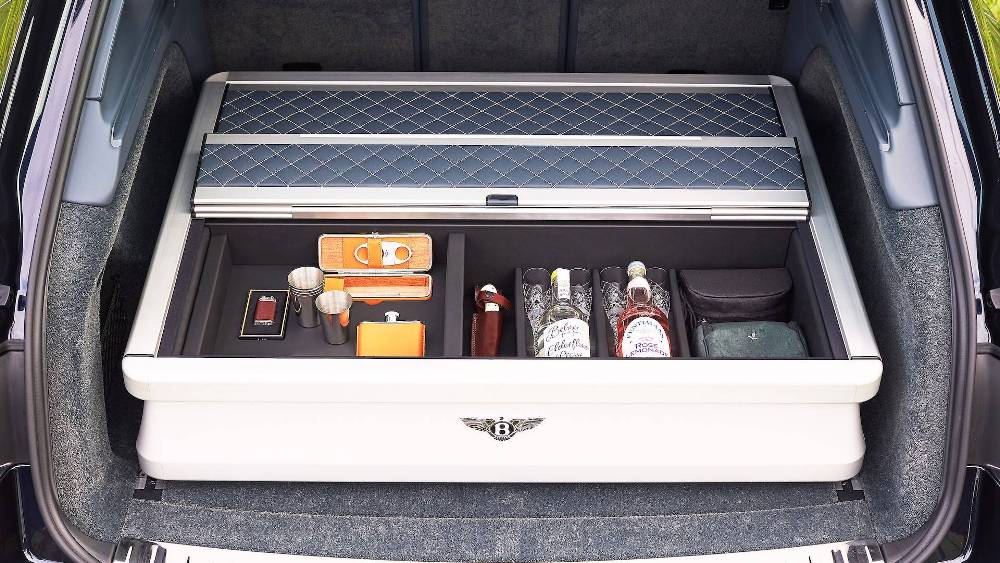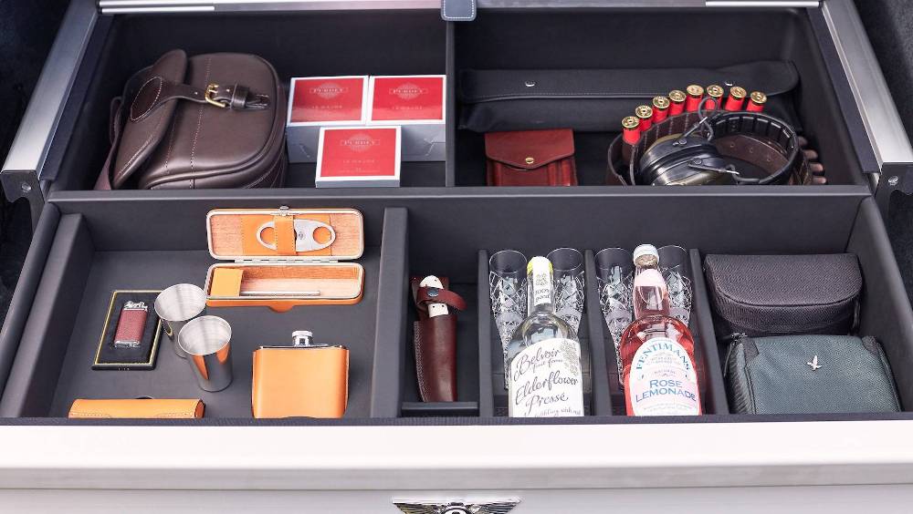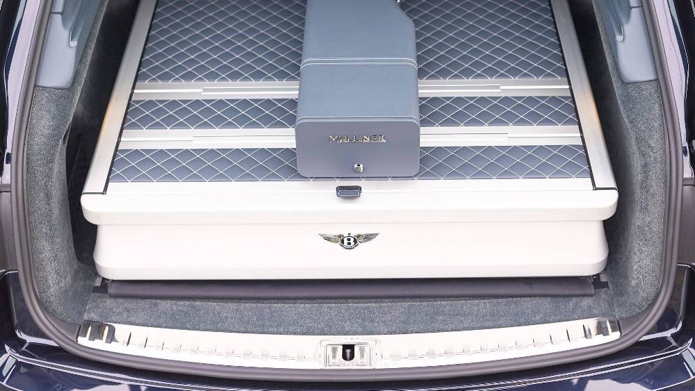 Mulliner ha creado un módulo diseñado a medida que se ubica en el maletero, al igual que en el Bentley Bentayga Falconry by Mulliner, un kit destinado a los amantes de la cetrería. Este módulo incluye una serie de compartimentos específicos para guardar ropa, bebidas, prismáticos o cartuchos, o incluso puros en un pequeño compartimento que se puede cerrar con llave.