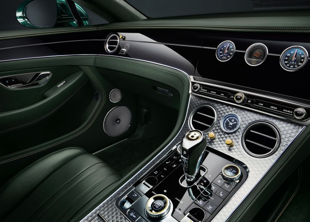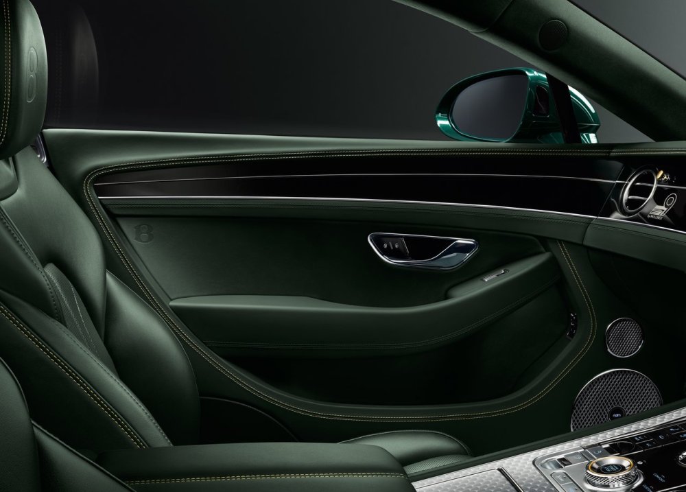 El interior de la edición limitada a 100 unidades está disponible con las tapicerías de cuero Cumbria Green o Beluga. Los logotipos “B” grabados en relieve adornan los reposacabezas de los asientos y los paneles de las puertas, al igual que las puertas del coche de carreras de 1930. El tablero de instrumentos ha sido personalizado a medida y la consola central ahora equipa un reloj exclusivo British Jaeger desarrollado en colaboración con Mulliner e inspirado en los diales originales de ‘Blower’ Nº9 de Birkin.